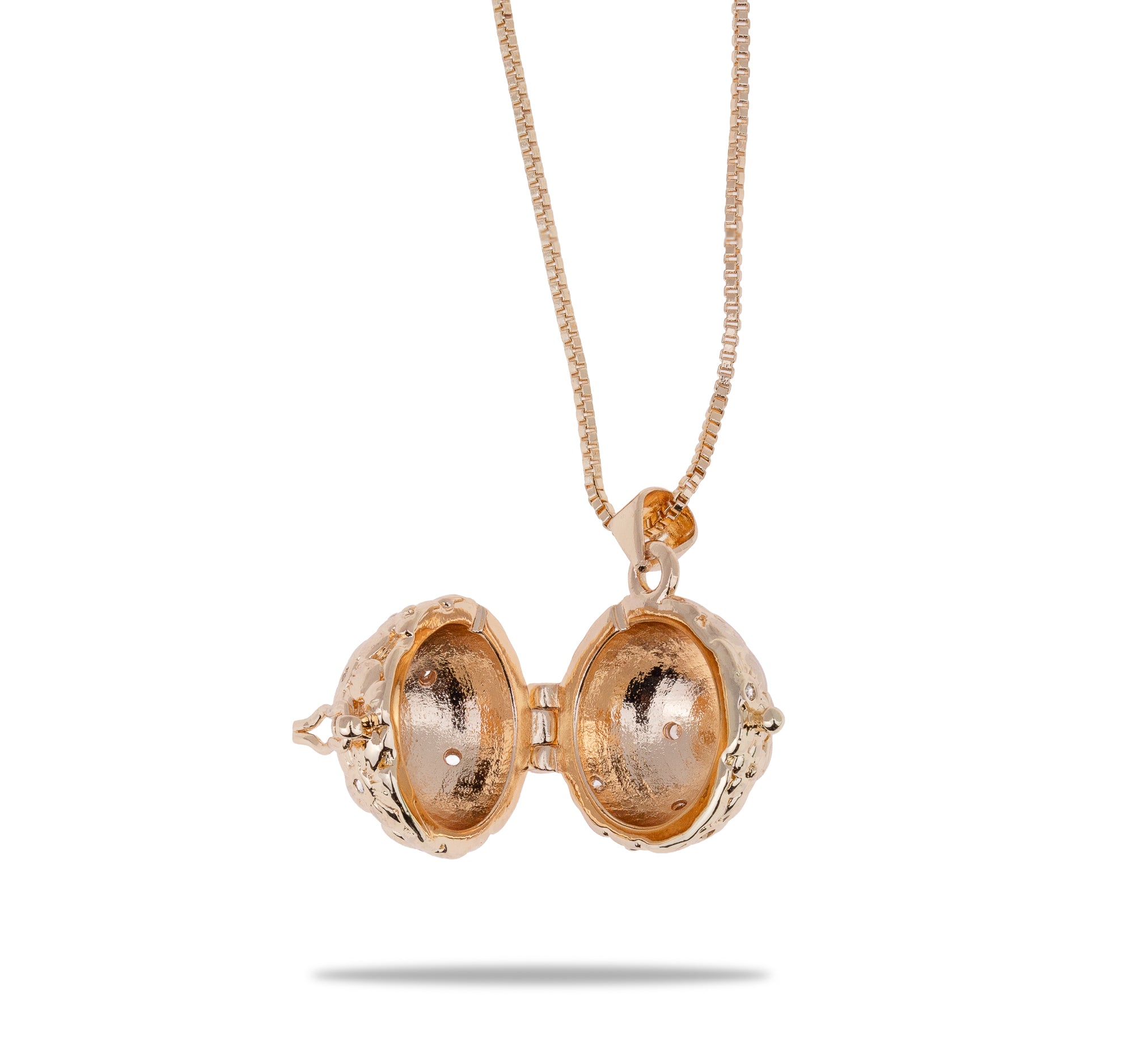 Collar guardapelo de esfera flores grabadas y circonias 60cm