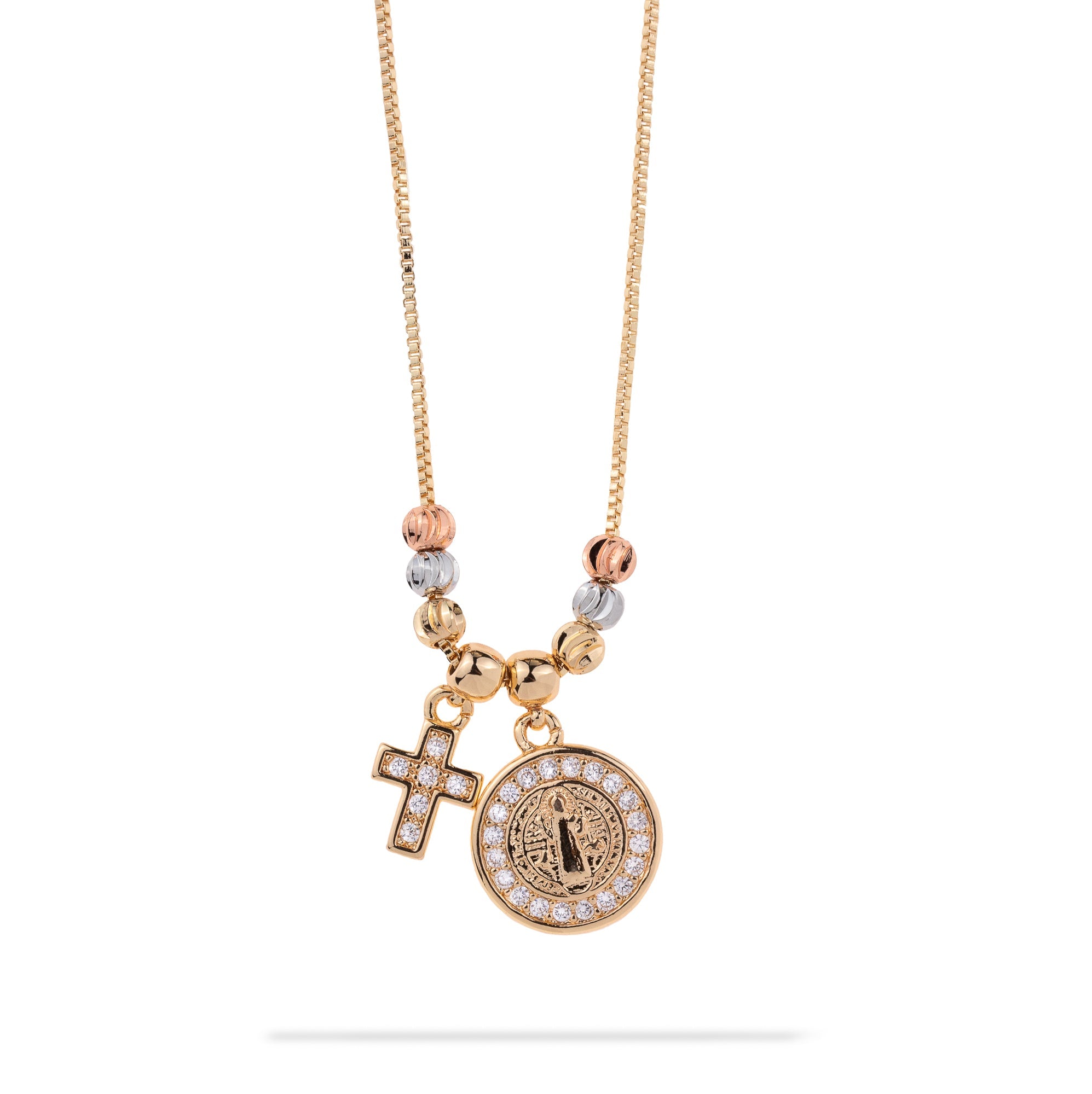 Collar ajustable con Medalla San Benito y Cruz circonias 45cm