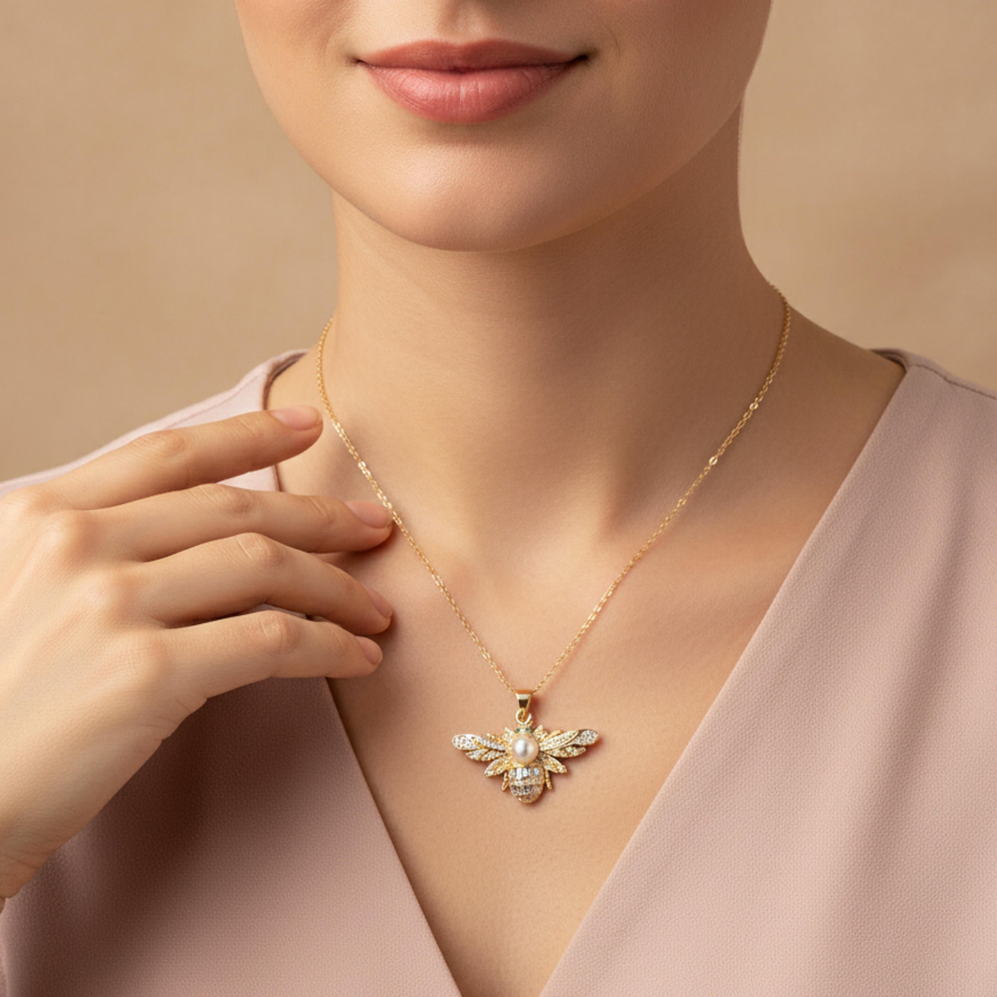 Collar de abeja con perla y circonias 40cm