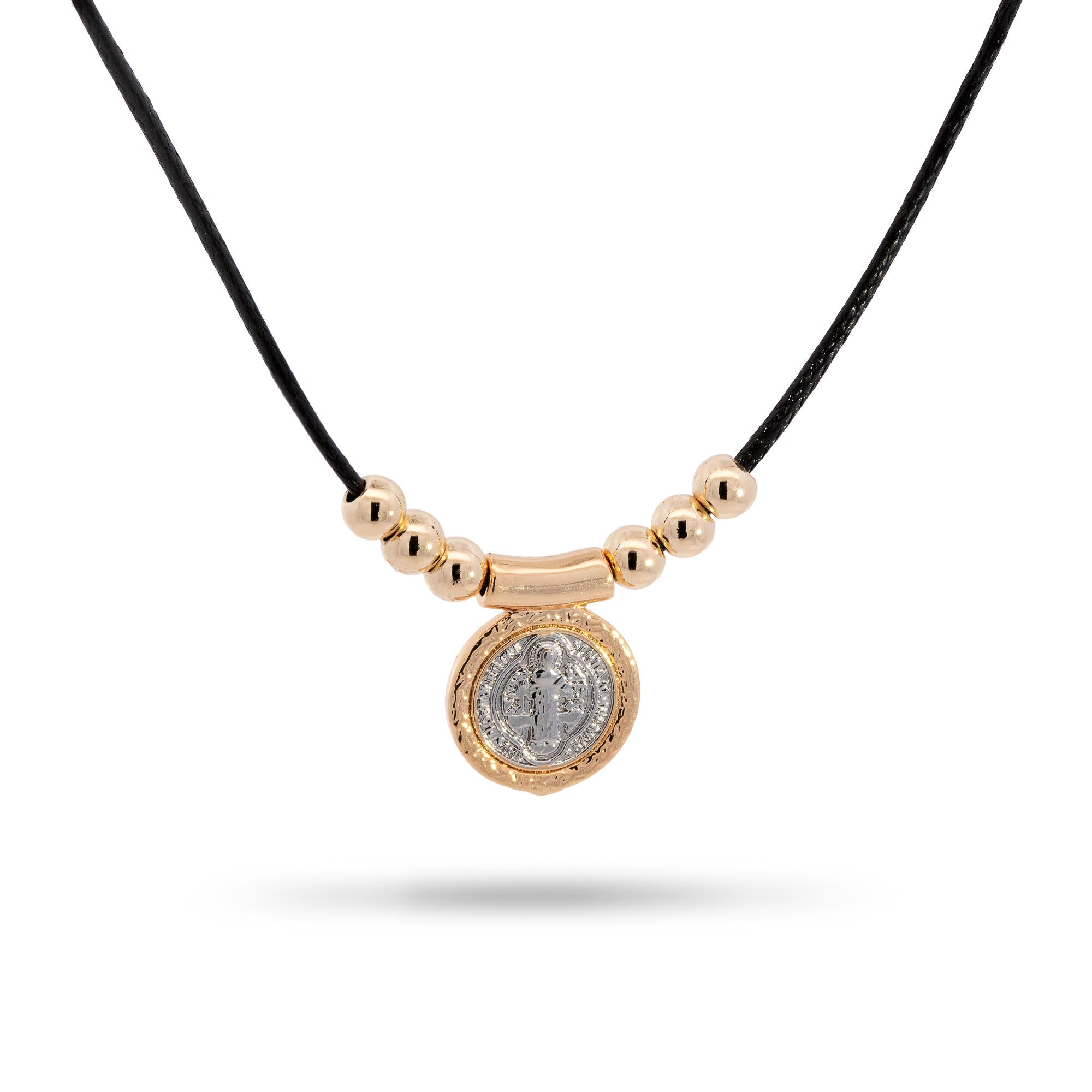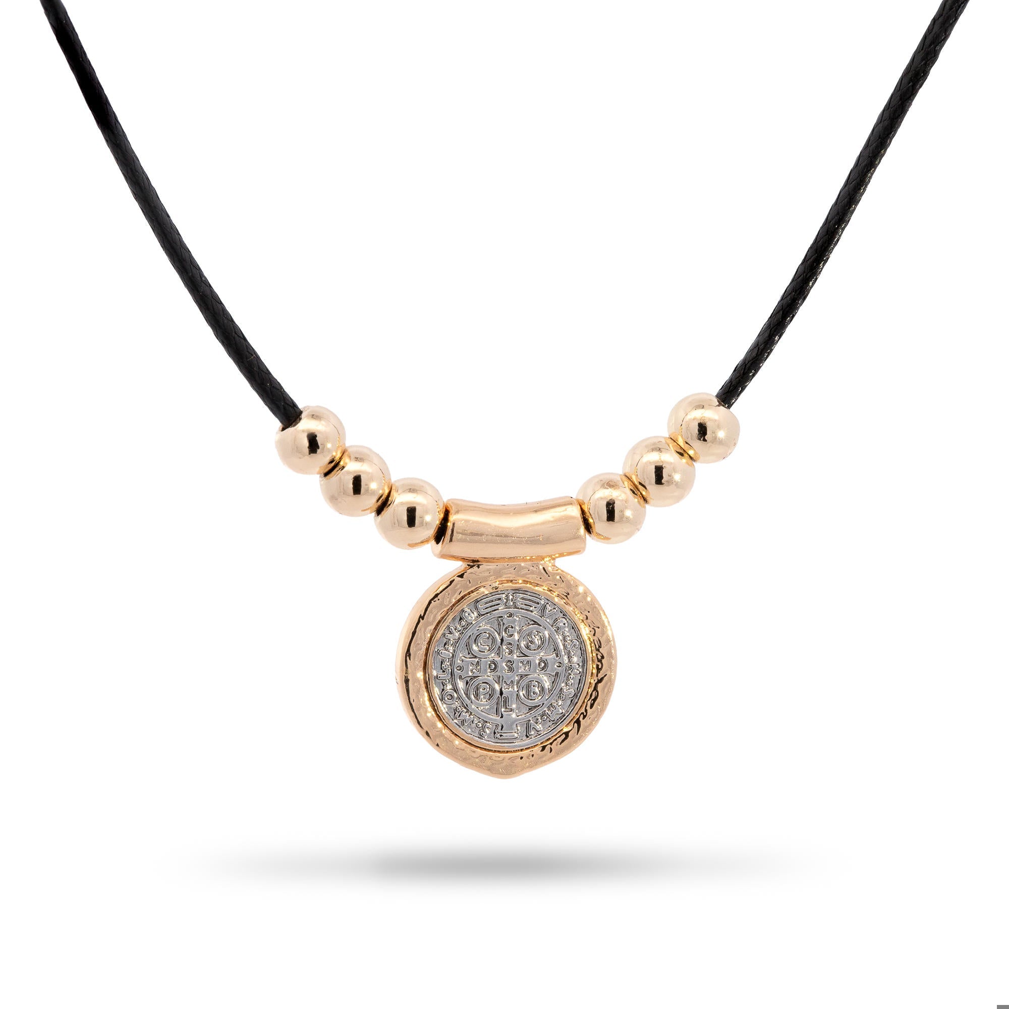 Collar ajustable hilo encerado medalla de san benito 60cm