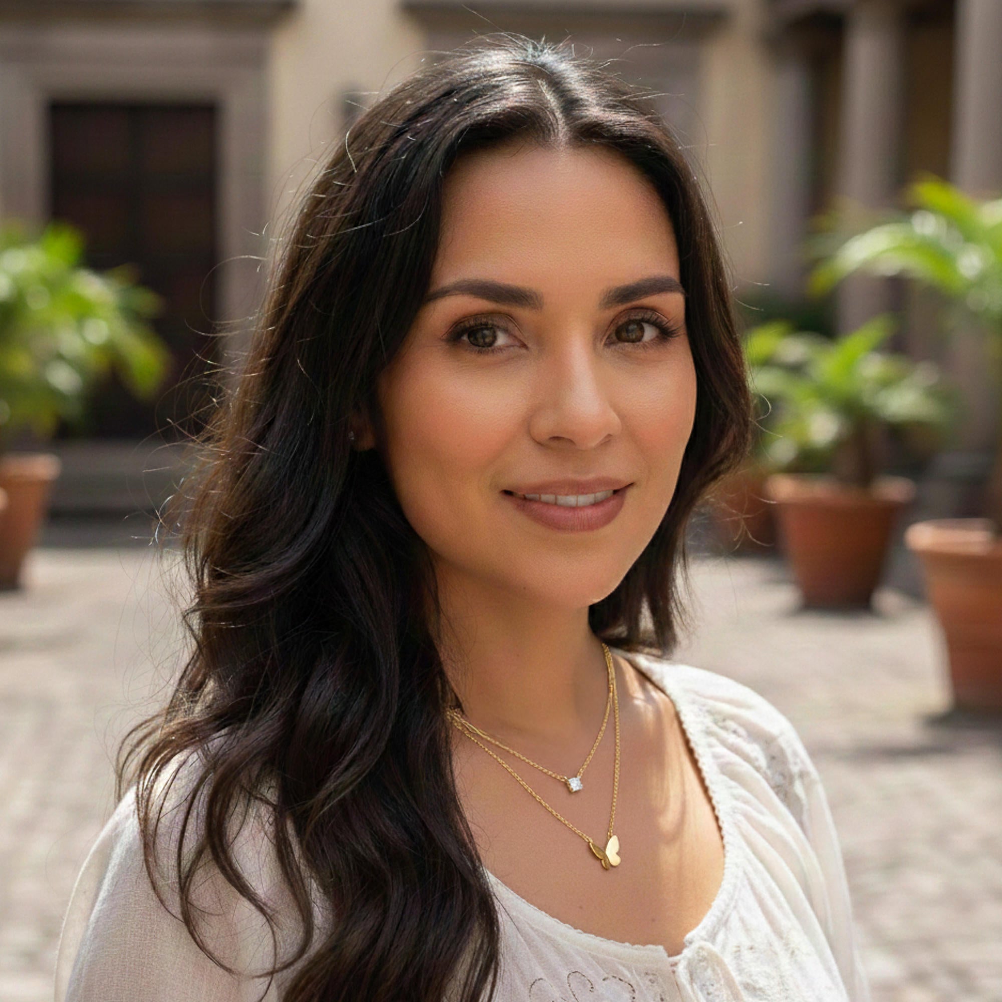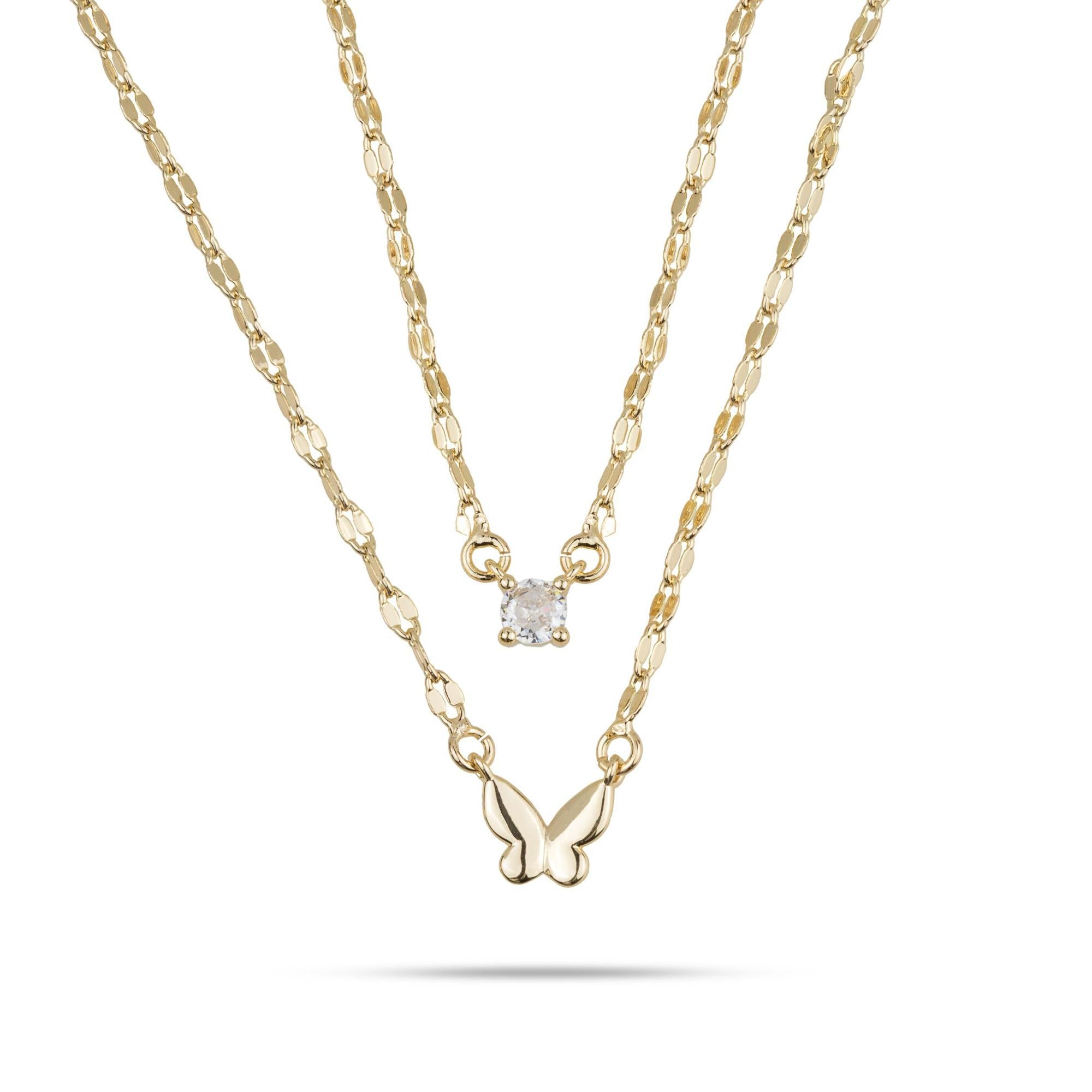 Collar doble cadena con dije de mariposa y circonia redonda 40-50cm