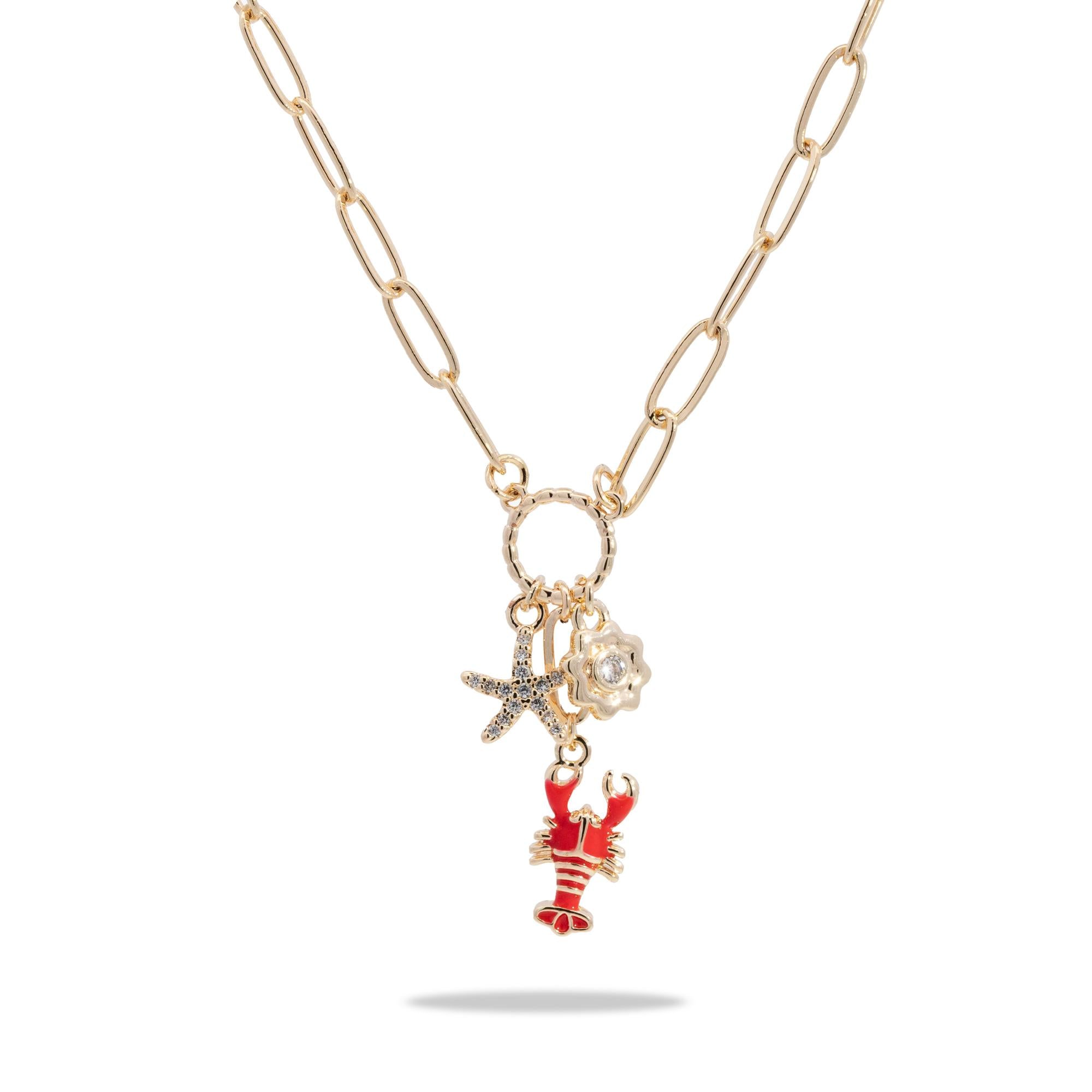 Collar de langosta y estrella de mar con esmalte y circonias 50-55cm