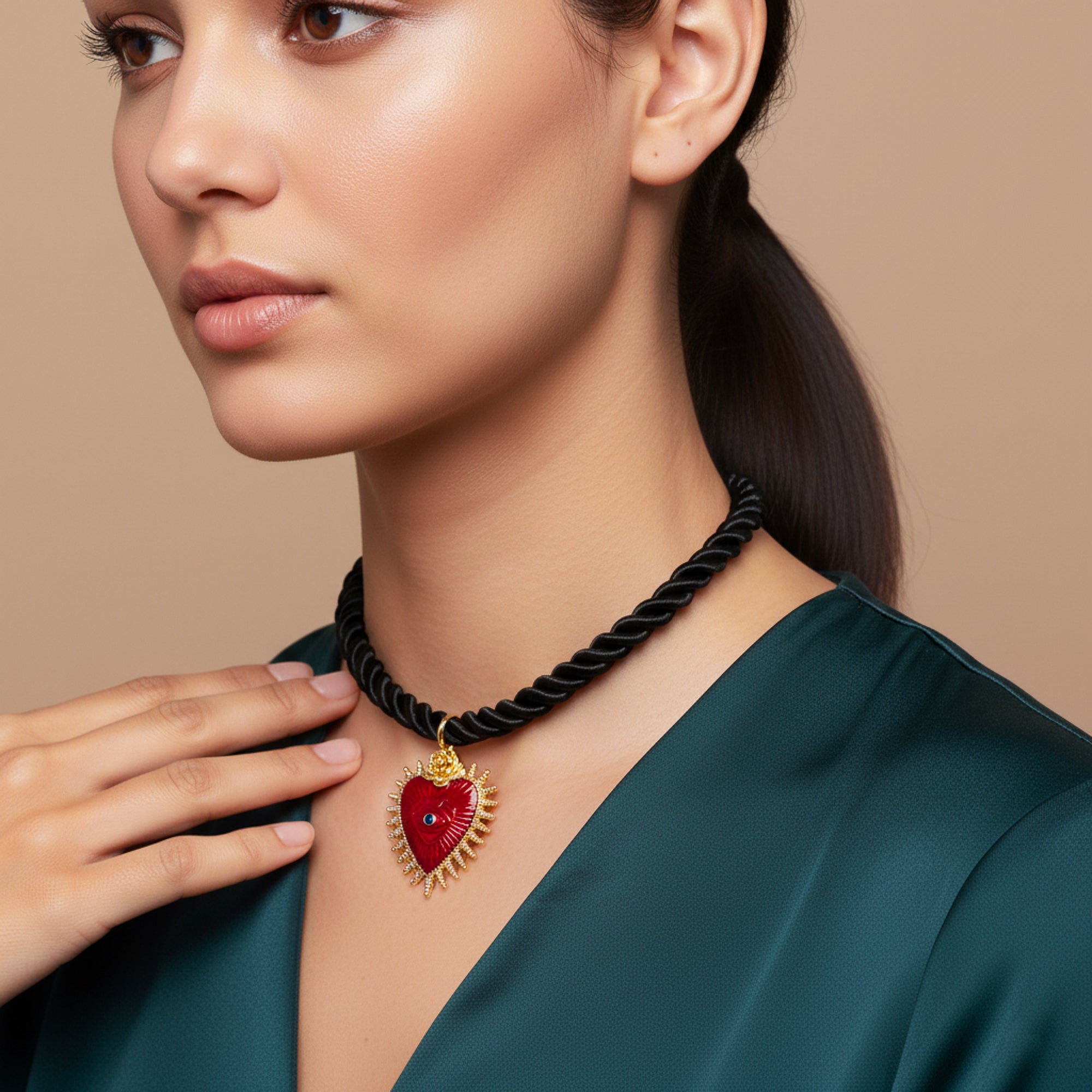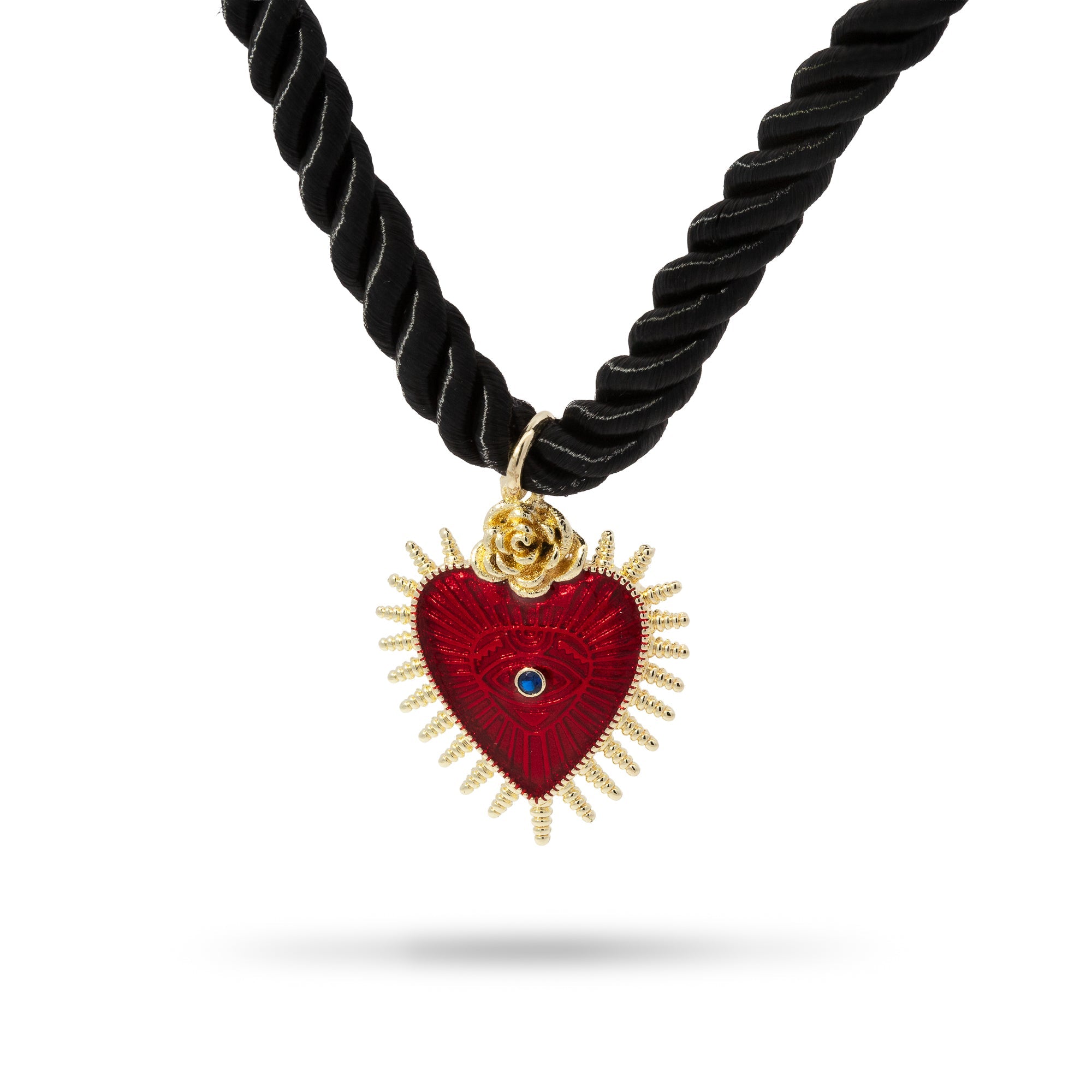 Collar cordon negro trenzado y dije corazon esmaltado 40-45cm