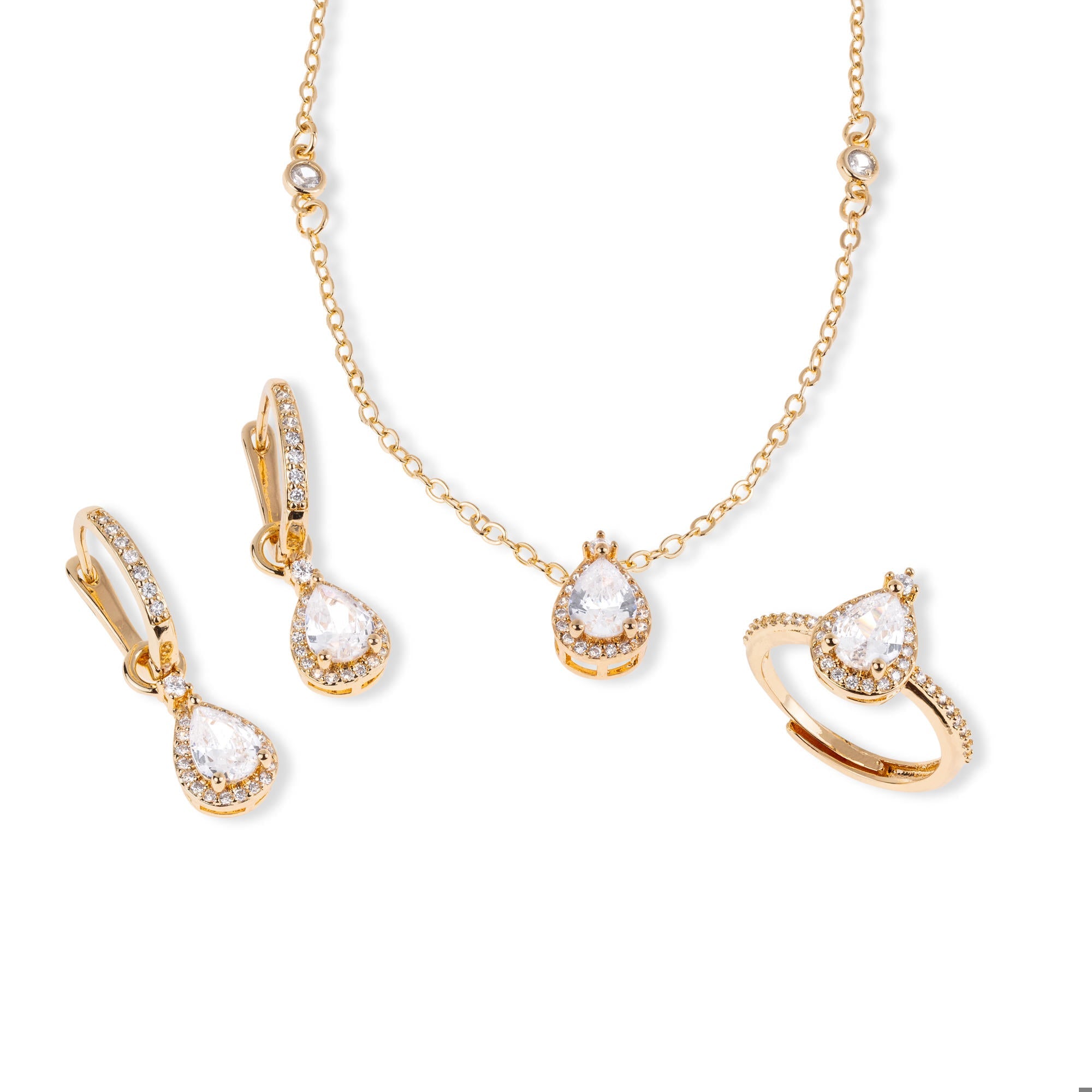 Juego de collar arete anillo ajustable con circonia gota 45-50cm