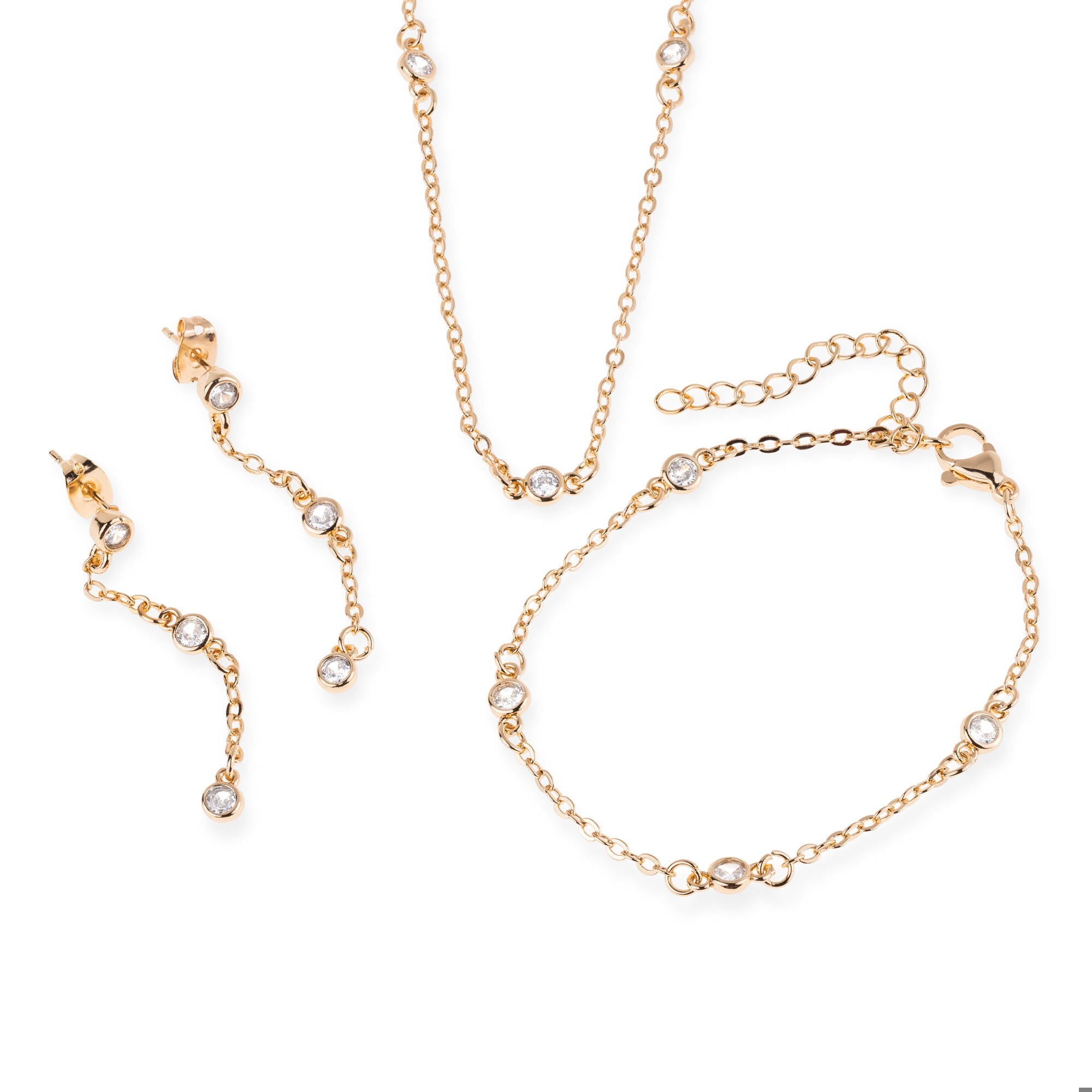 Juego de collar pulsera y arete con circonias redondas 40-44cm