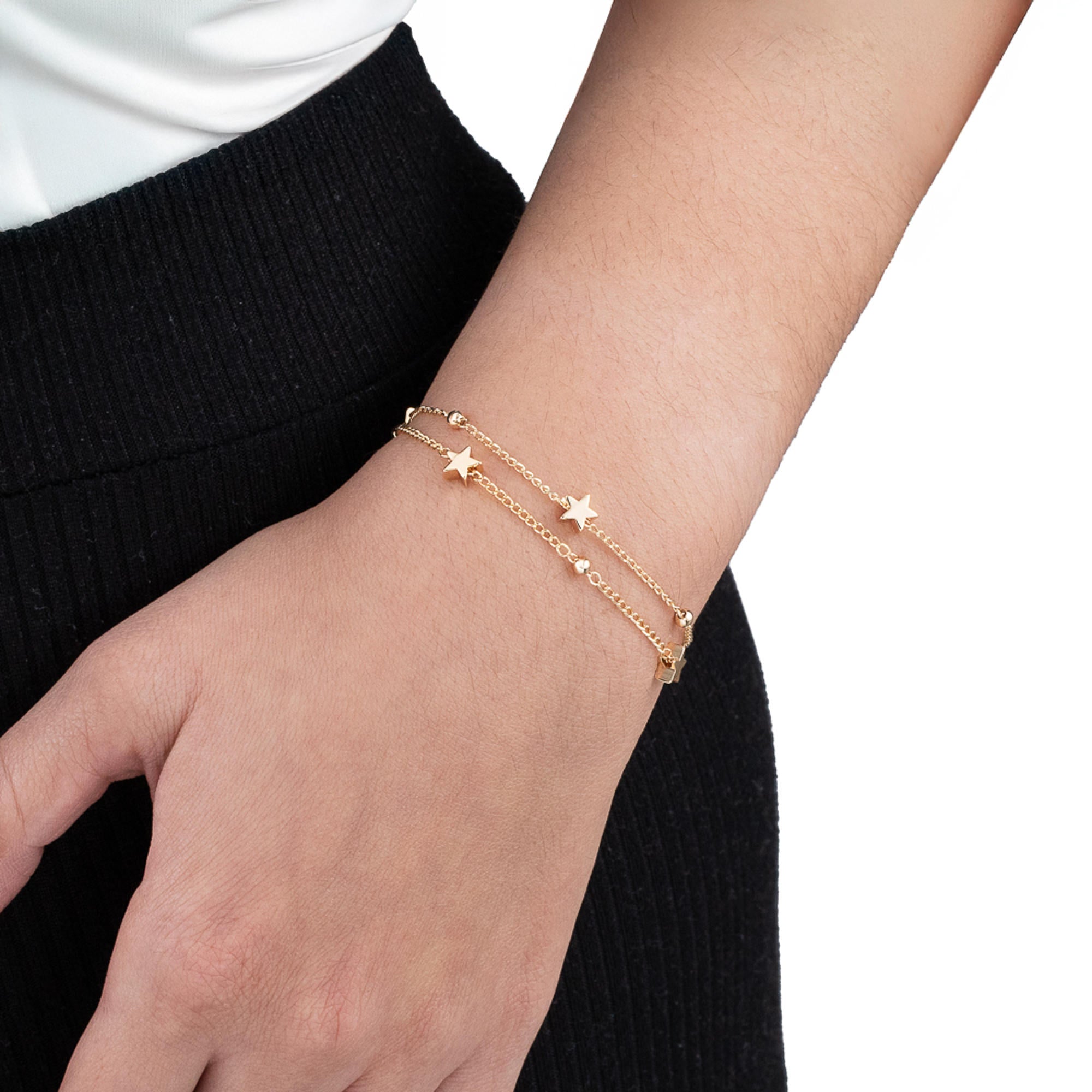 Pulsera Doble con Estrellas y Balin Liso 16CM
