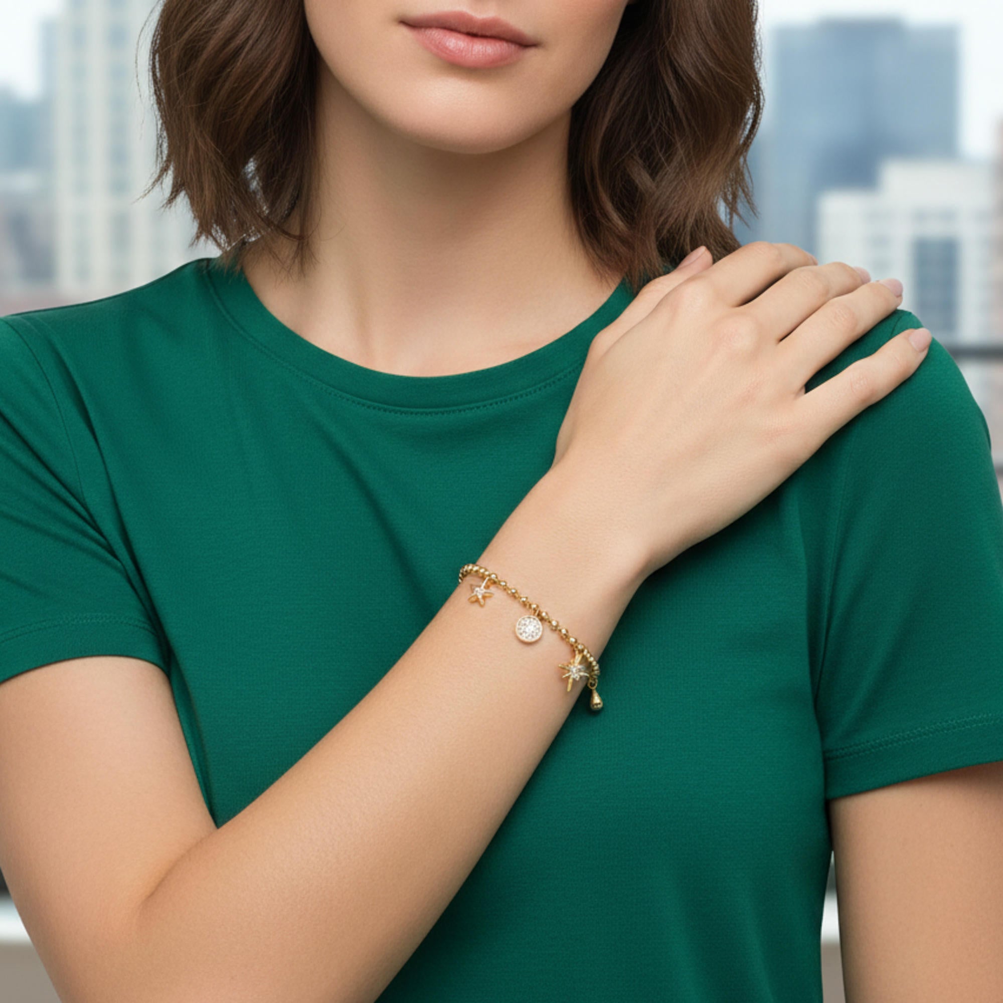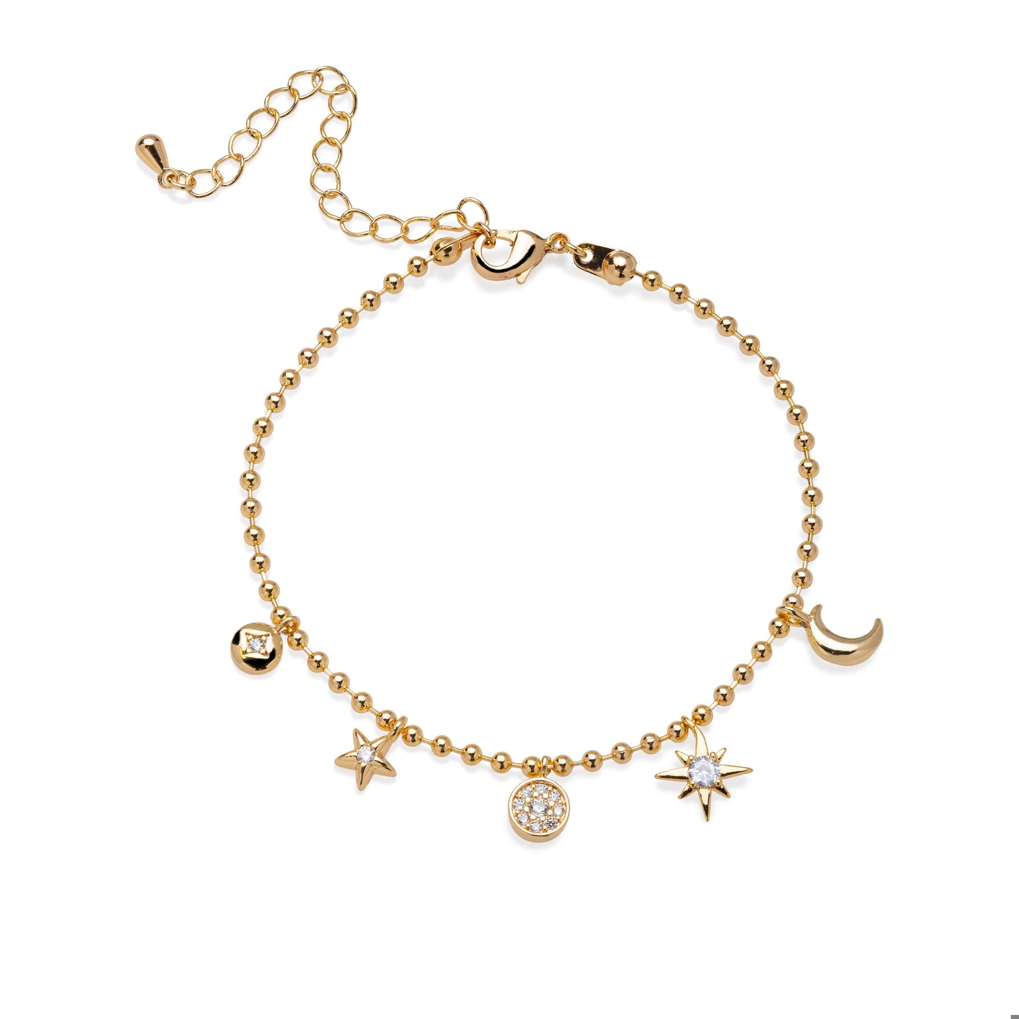 Pulsera con dije de sol luna y estrellas con circonias 17-22cm