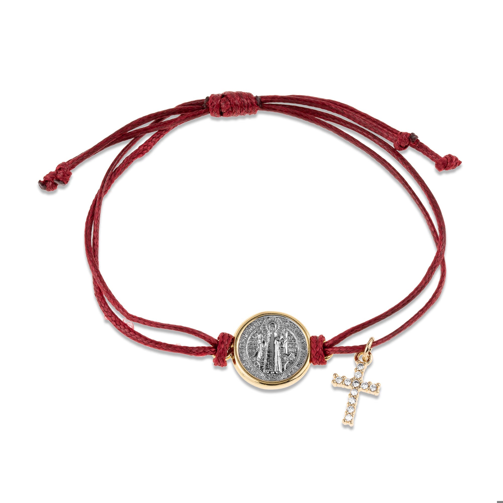 Pulsera ajustable de hilo Medalla de San Benito y Cruz con circonias 26cm