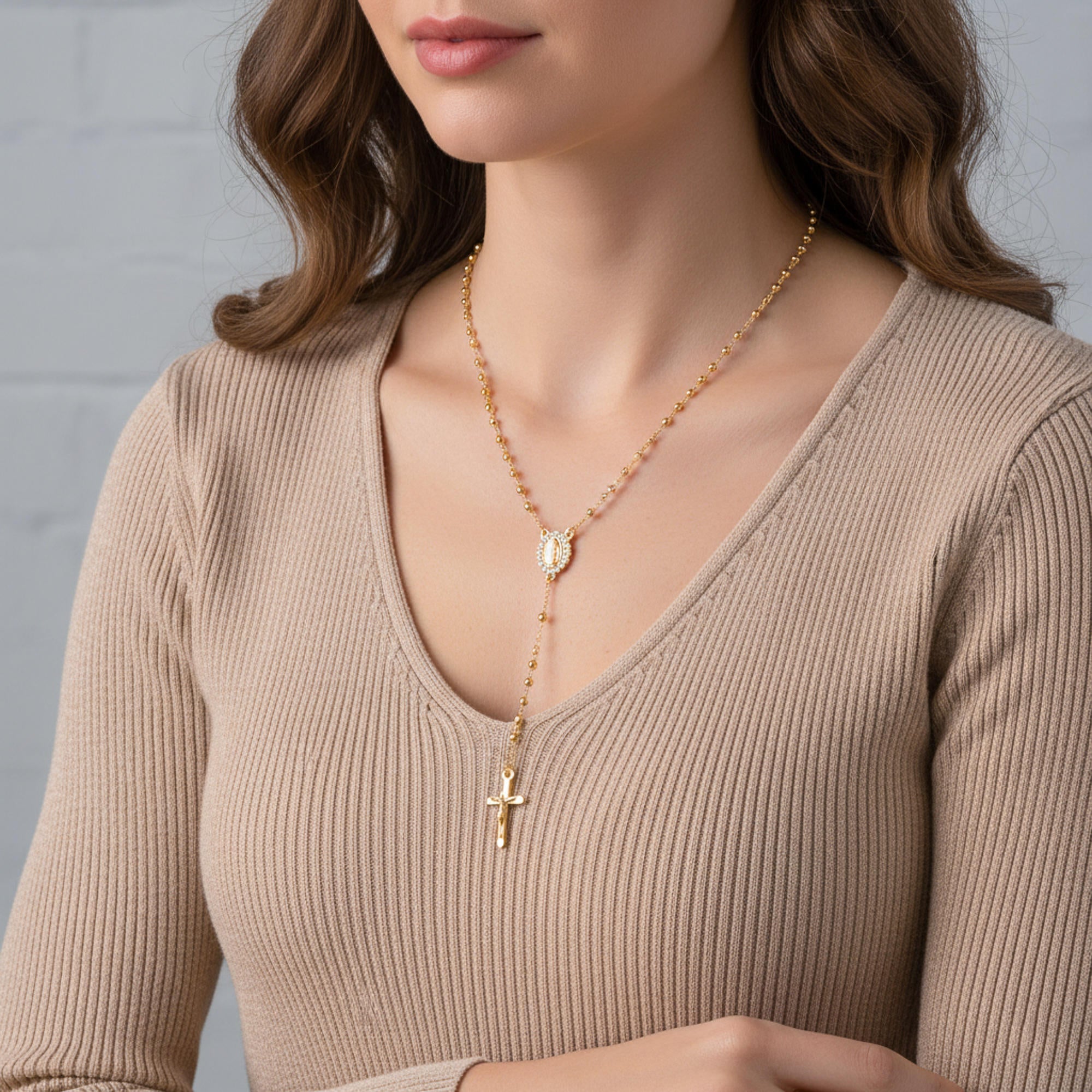 Rosario con Medalla de Virgen de Guadalupe y circonias 50cm