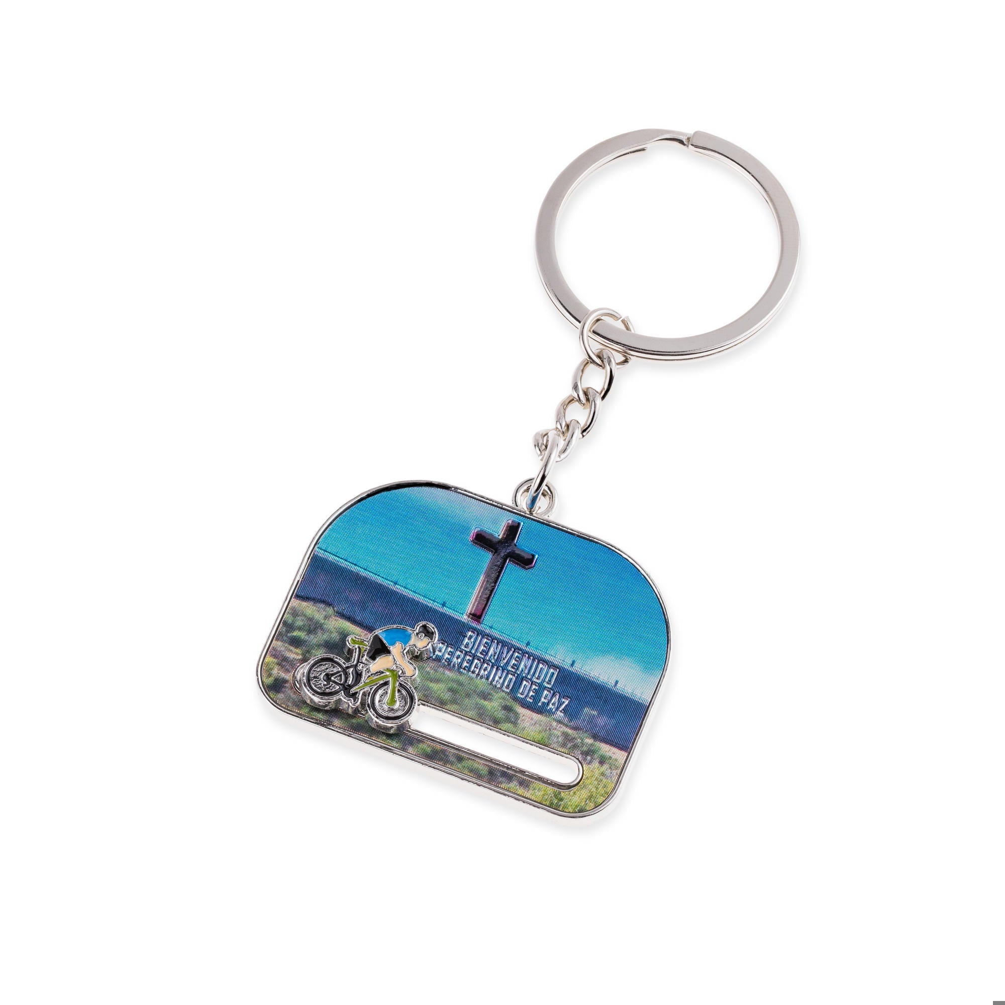 Llavero peregrino de paz con ciclista deslizante 9cm