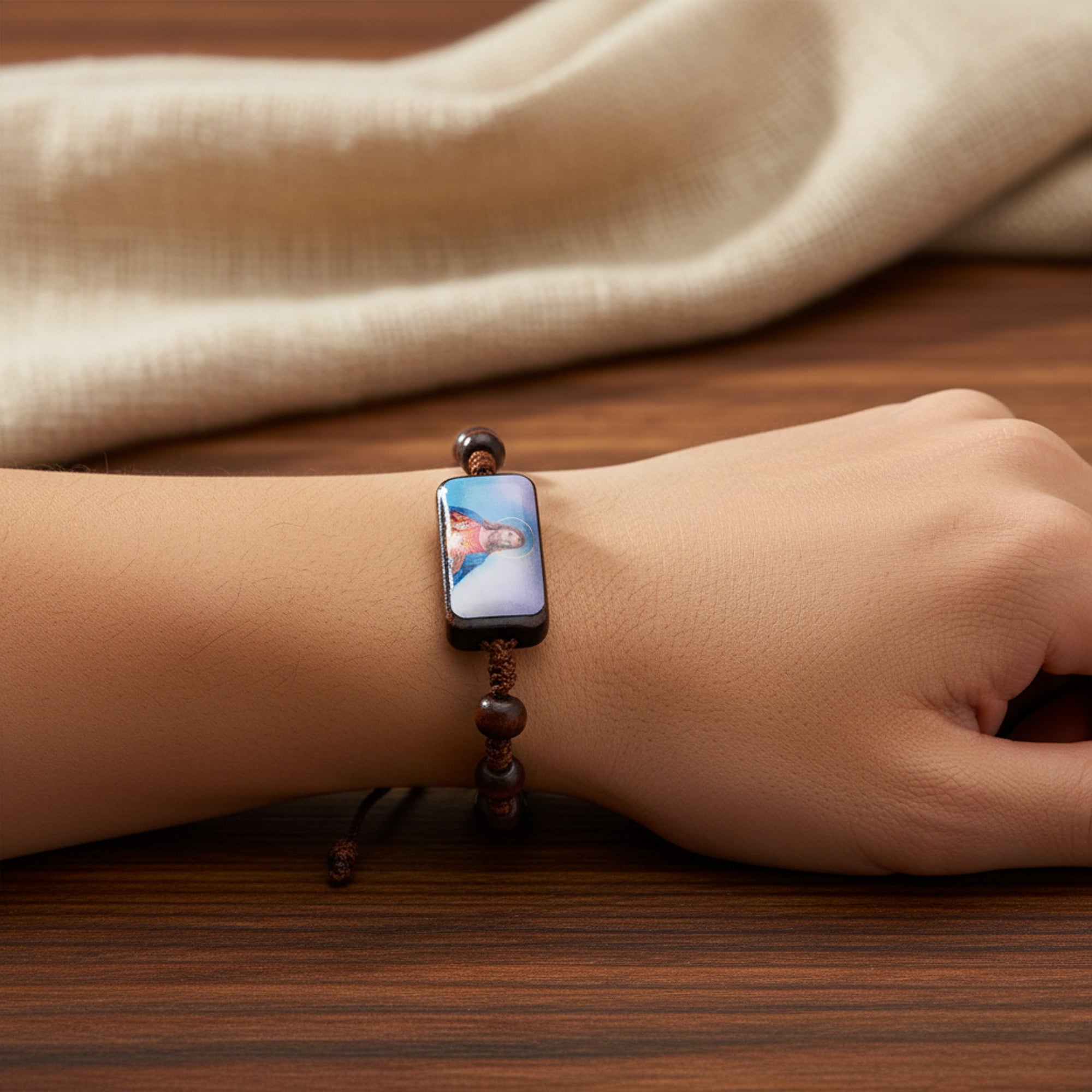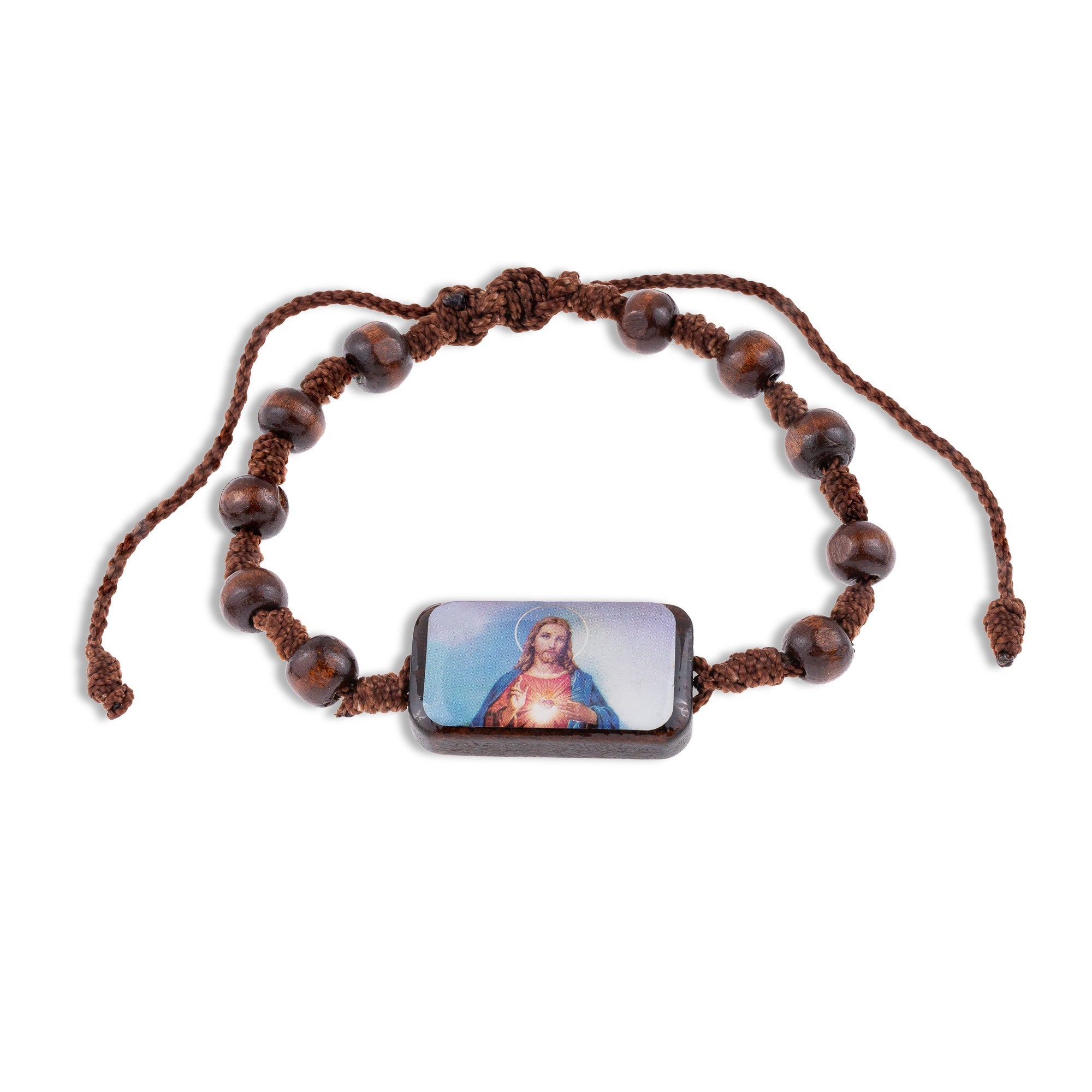 Pulsera de hilo ajustable de madera sagrado corazon de jesus 19mm