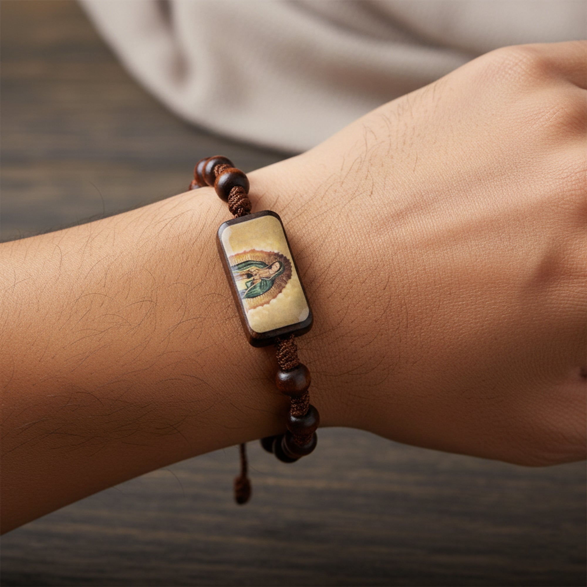 Pulsera de hilo ajustable madera virgen de guadalupe 19mm