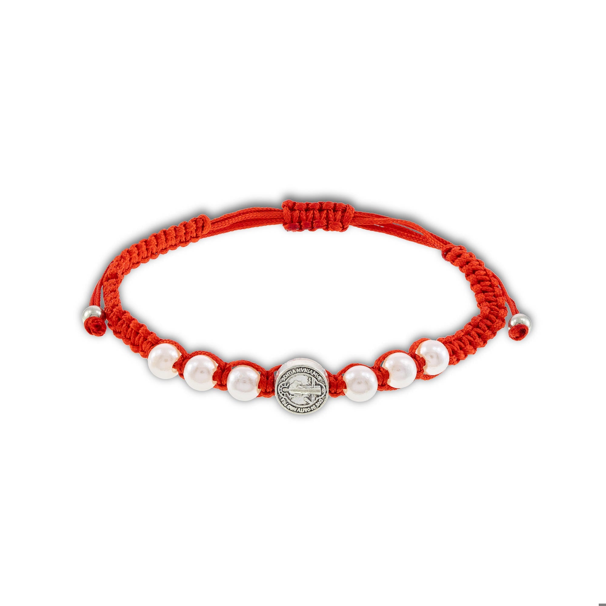 Pulsera de hilo ajustable medalla de san benito y perlas 9mm