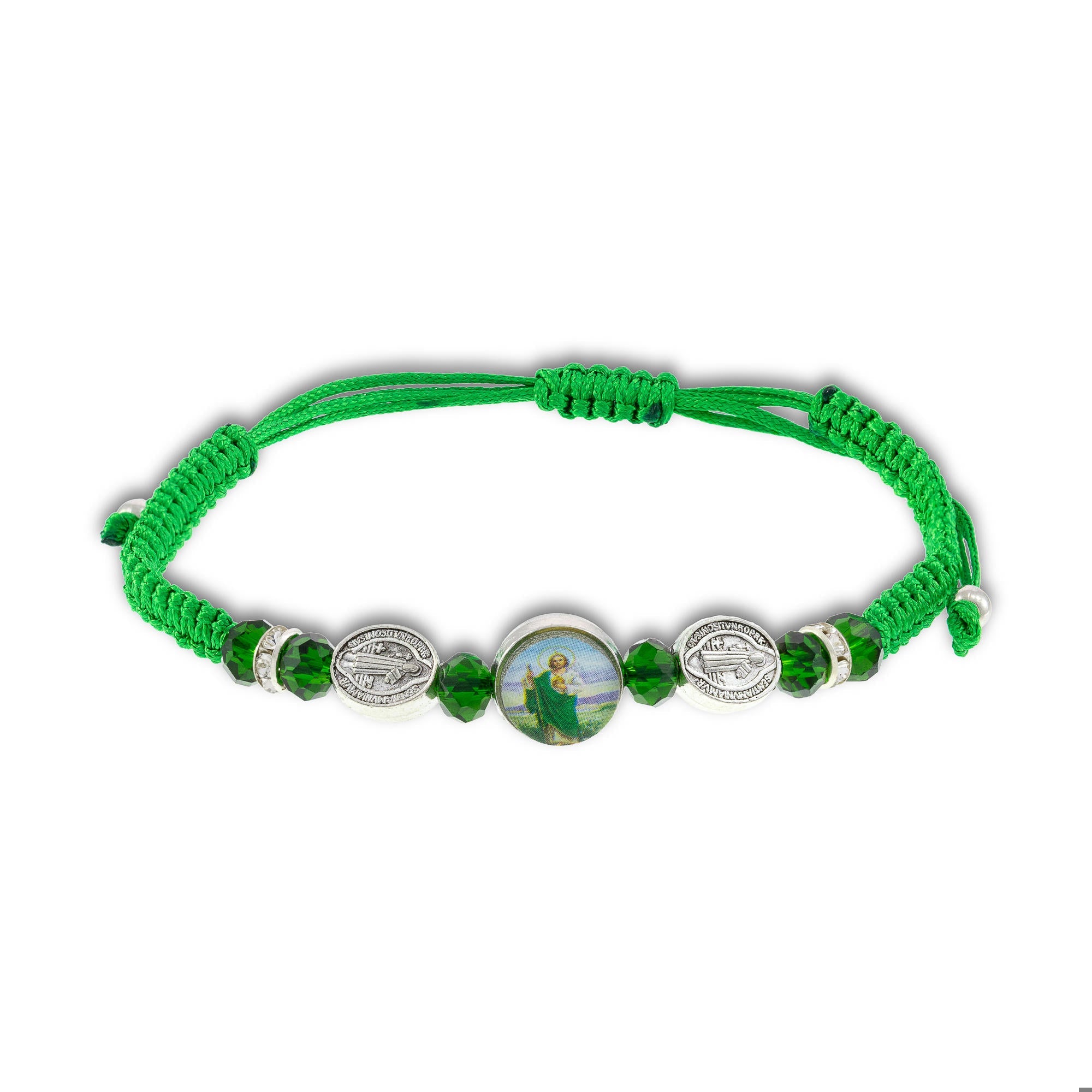 Pulsera de hilo ajustable san judas tadeo y medalla san benito 11mm