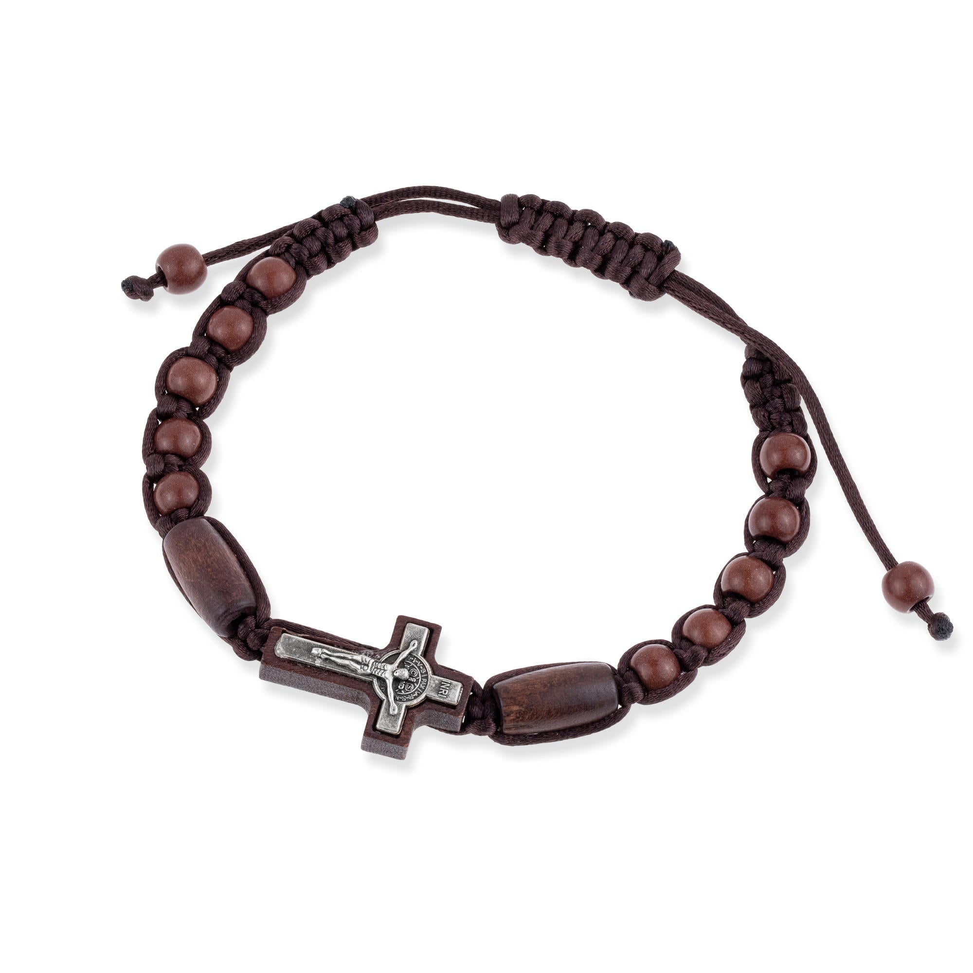 Pulsera de hilo ajustable con cruz y cuentas de madera 8mm