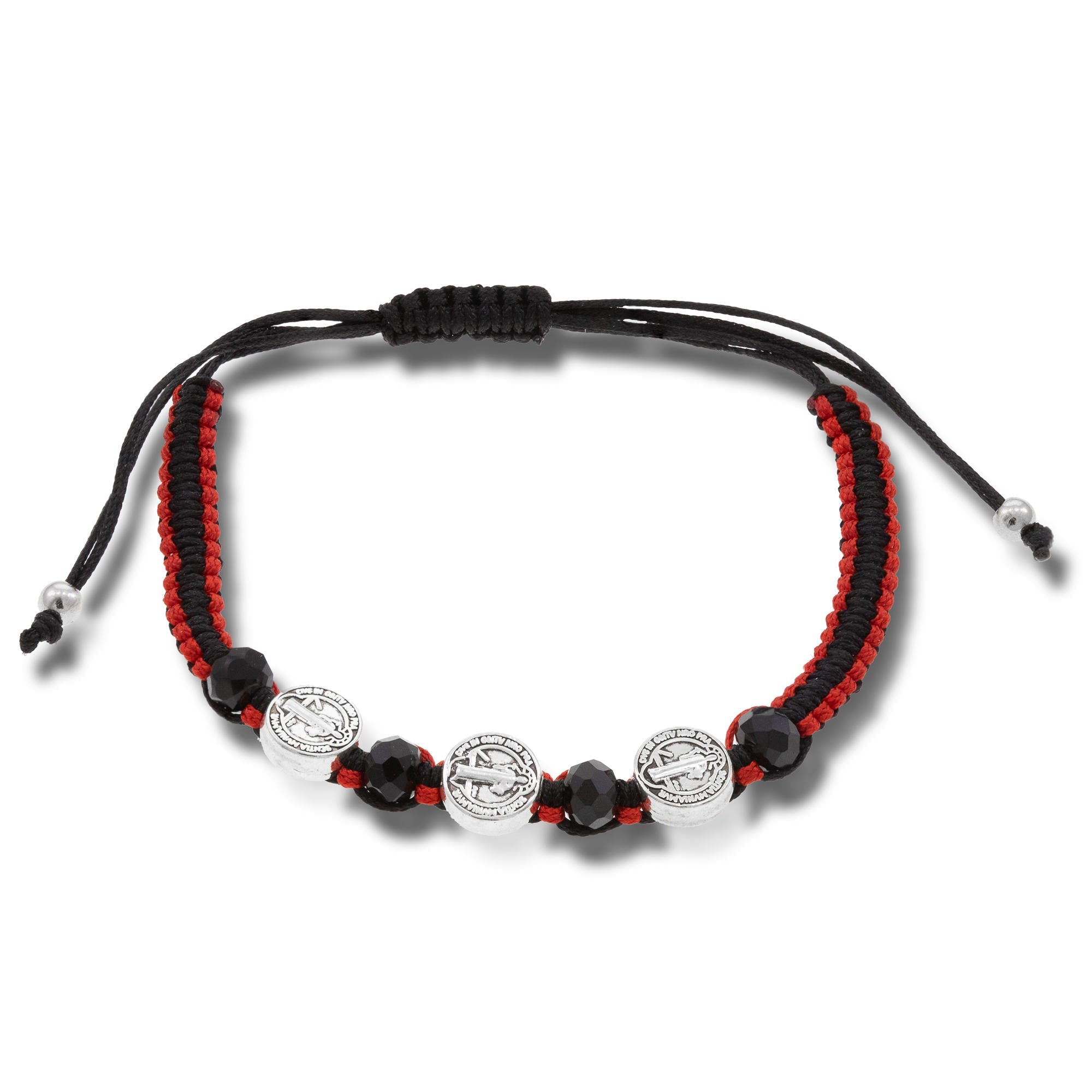 Pulsera de hilo ajustable medalla de san benito y cristales 9mm