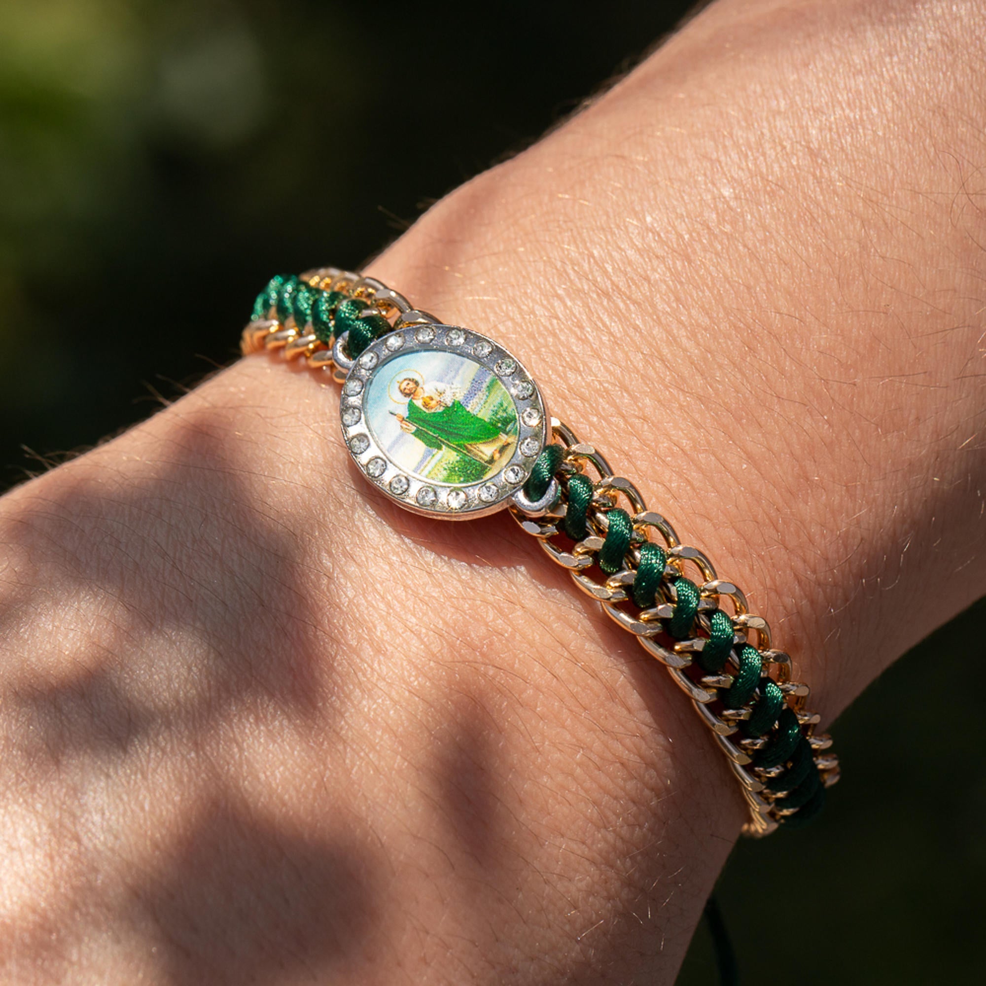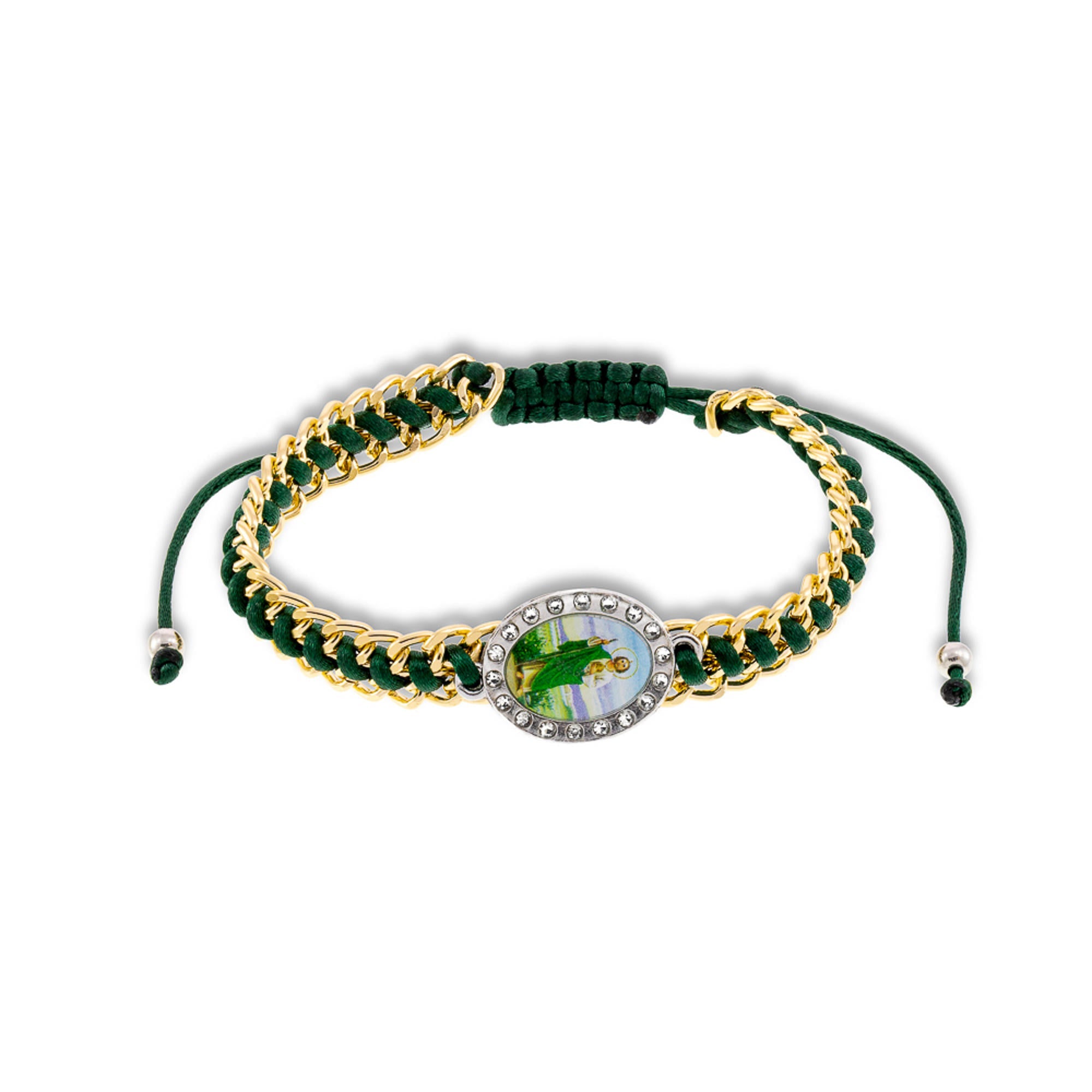Pulsera ajustable hilo tejido con cadena San Judas Tadeo 8mm