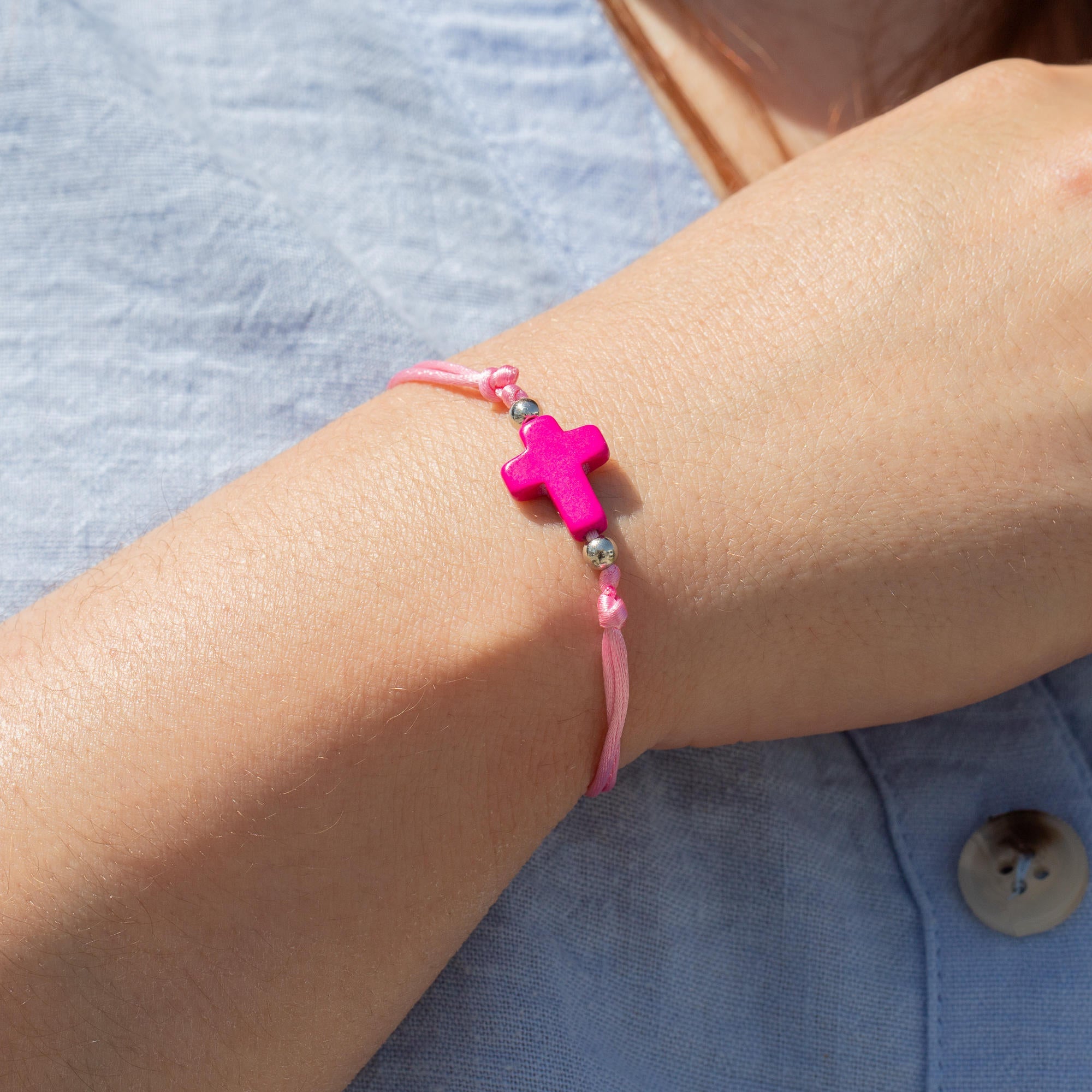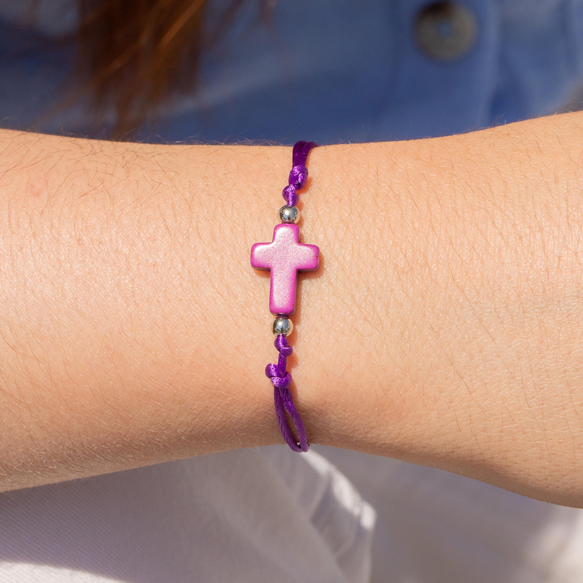 Pulsera de hilo ajustable con cruz de pasta 1mm