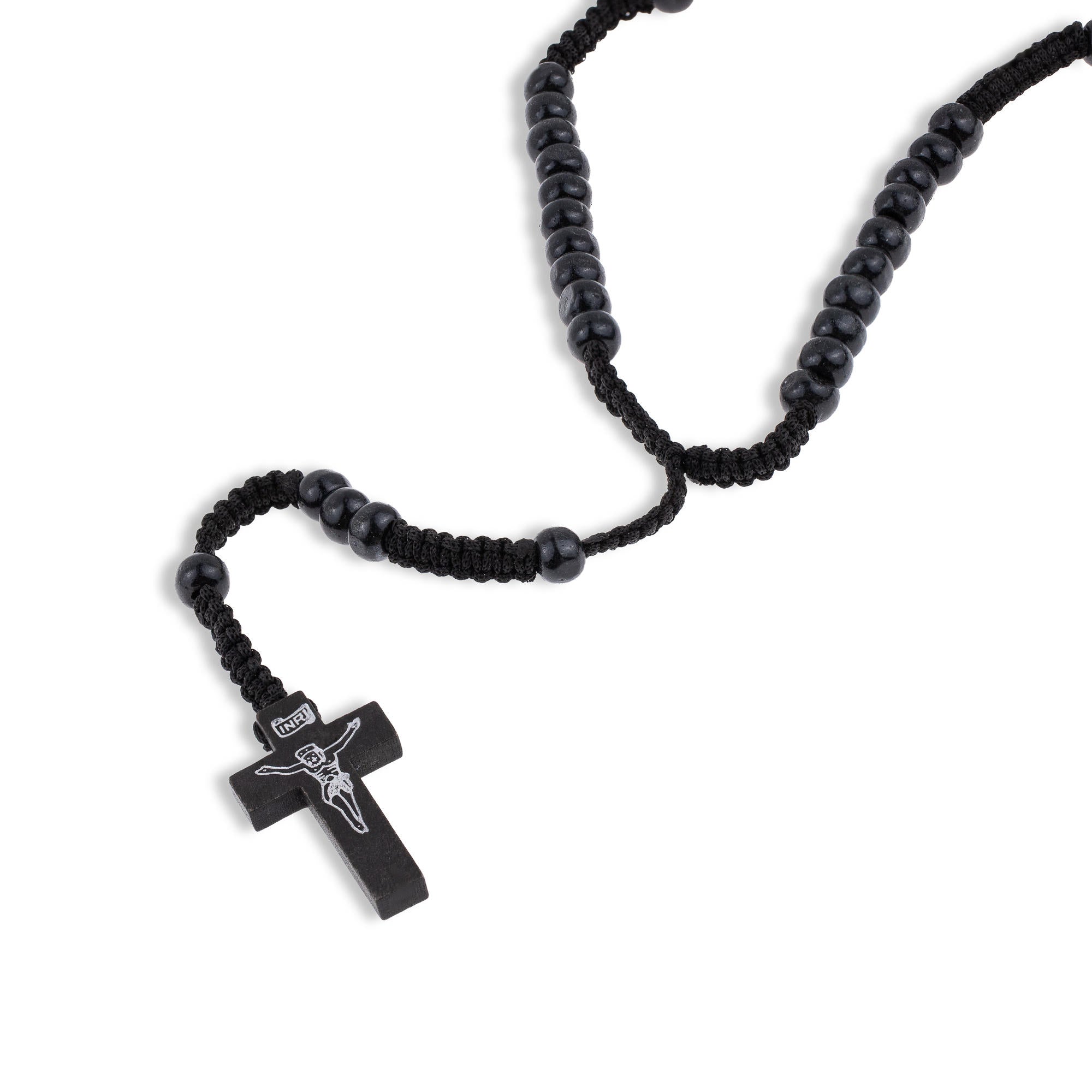 Rosario de hilo con cuentas y cruz de madera 60cm/8mm