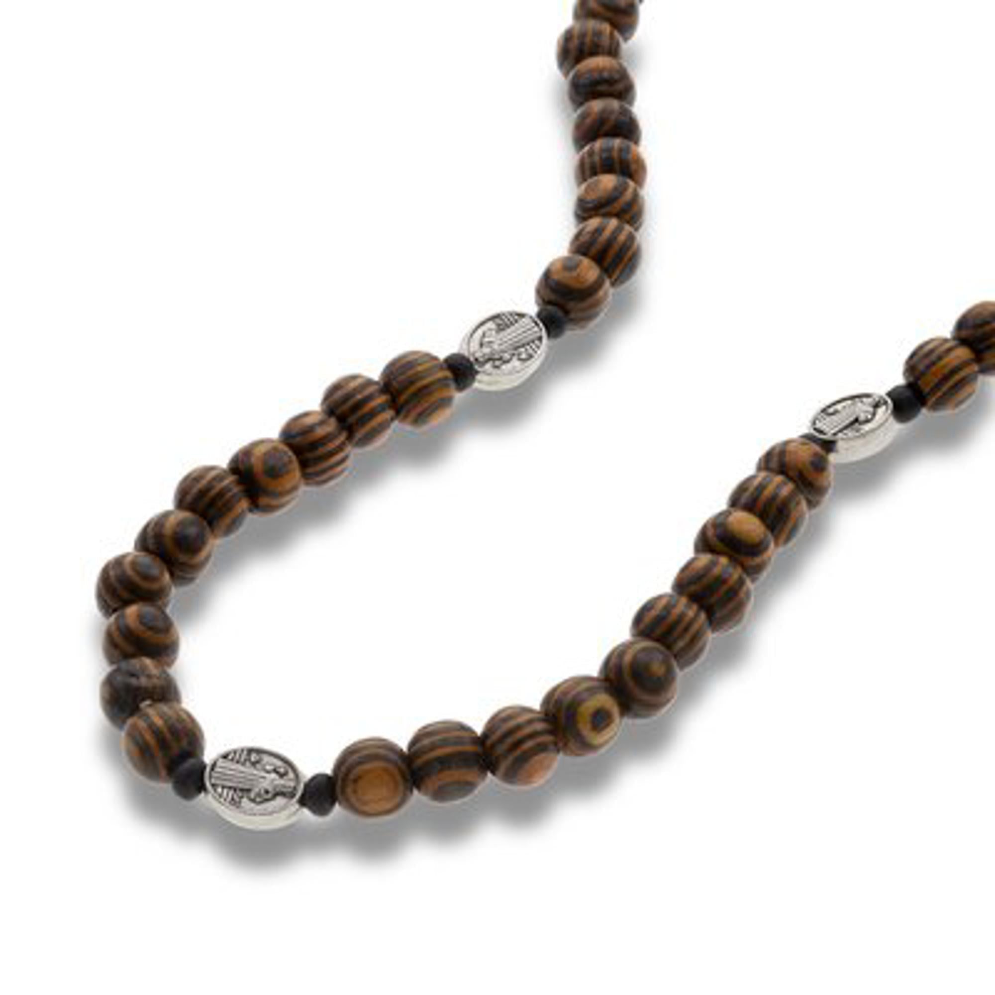 Pulsera elastica medalla de san benito y cruz de madera 50cm/8mm