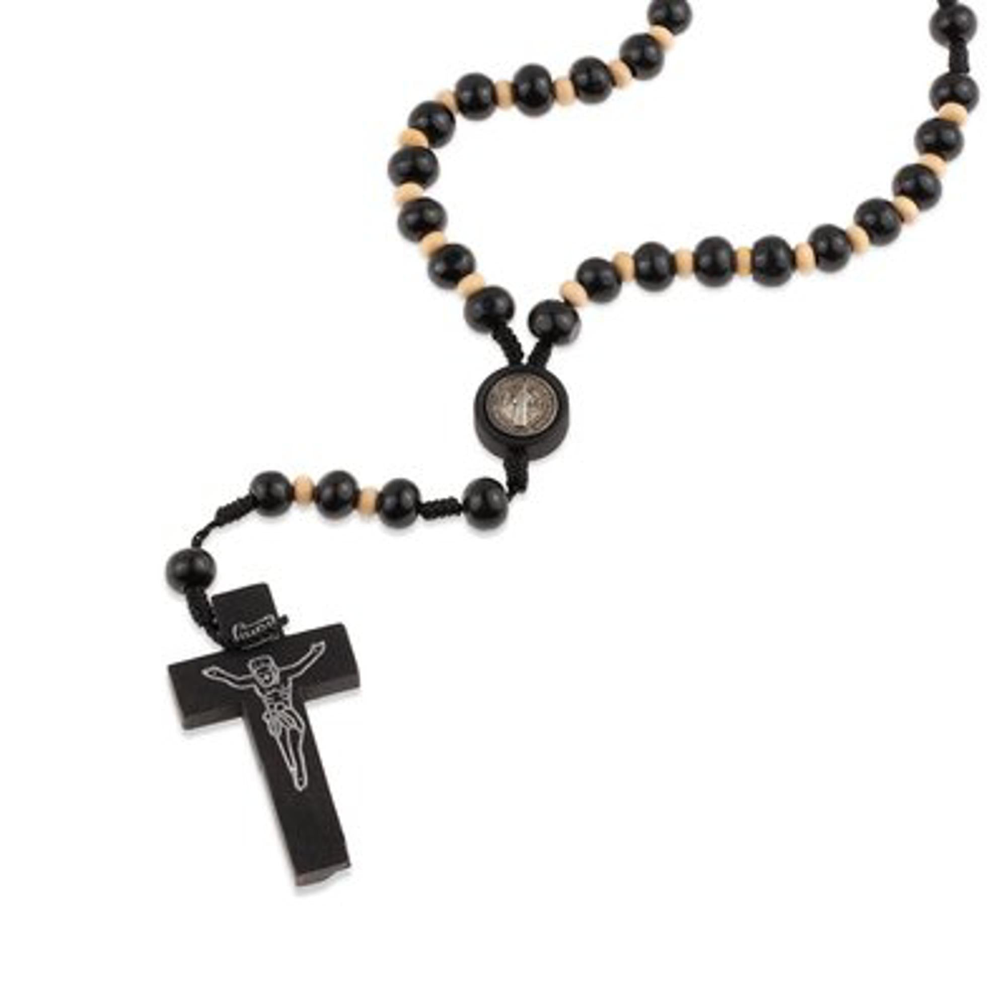 Rosario de hilo cuentas de madera y medalla de san benito 50cm/7mm