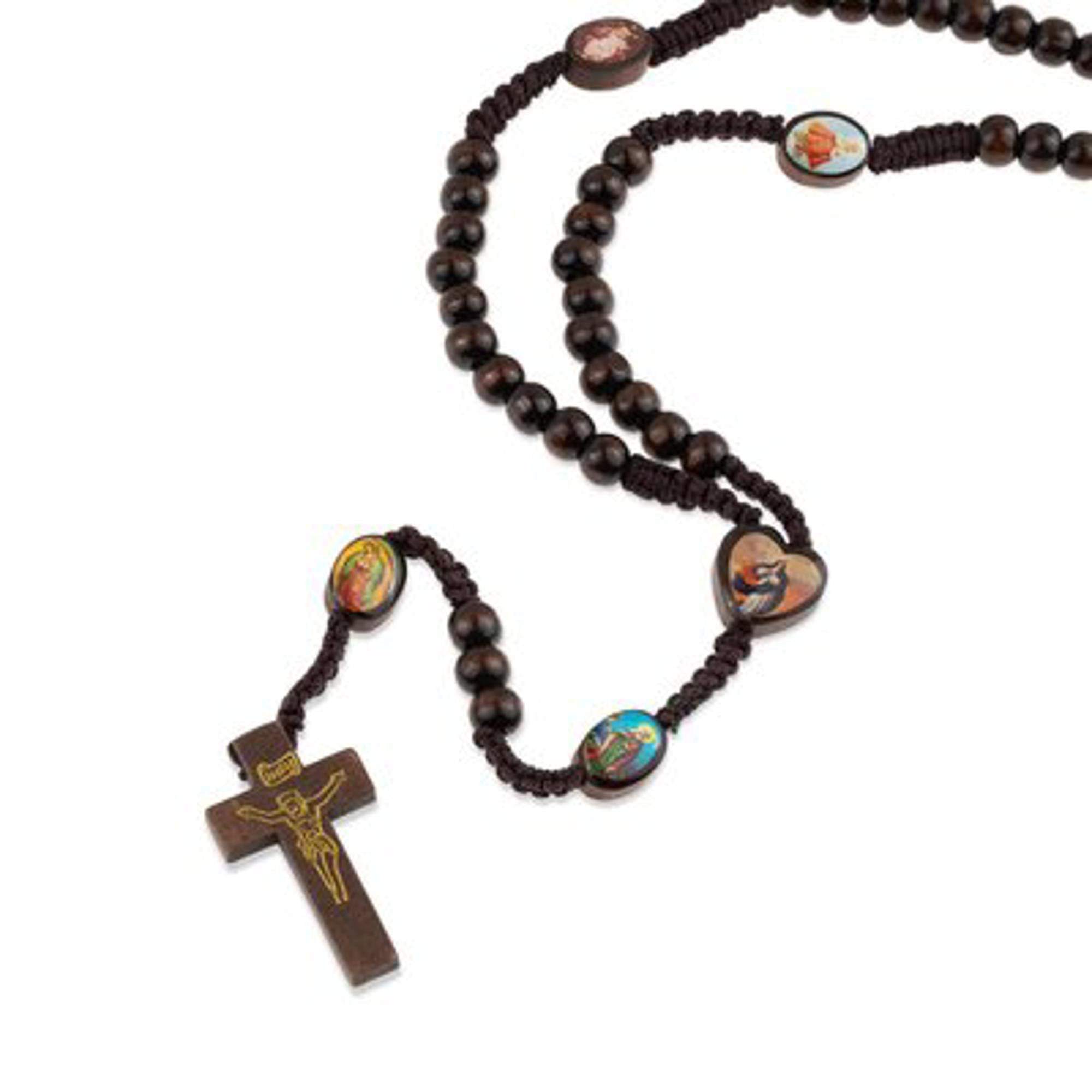 Rosario de hilo cuentas de madera e imagenes religiosas 60cm/6mm
