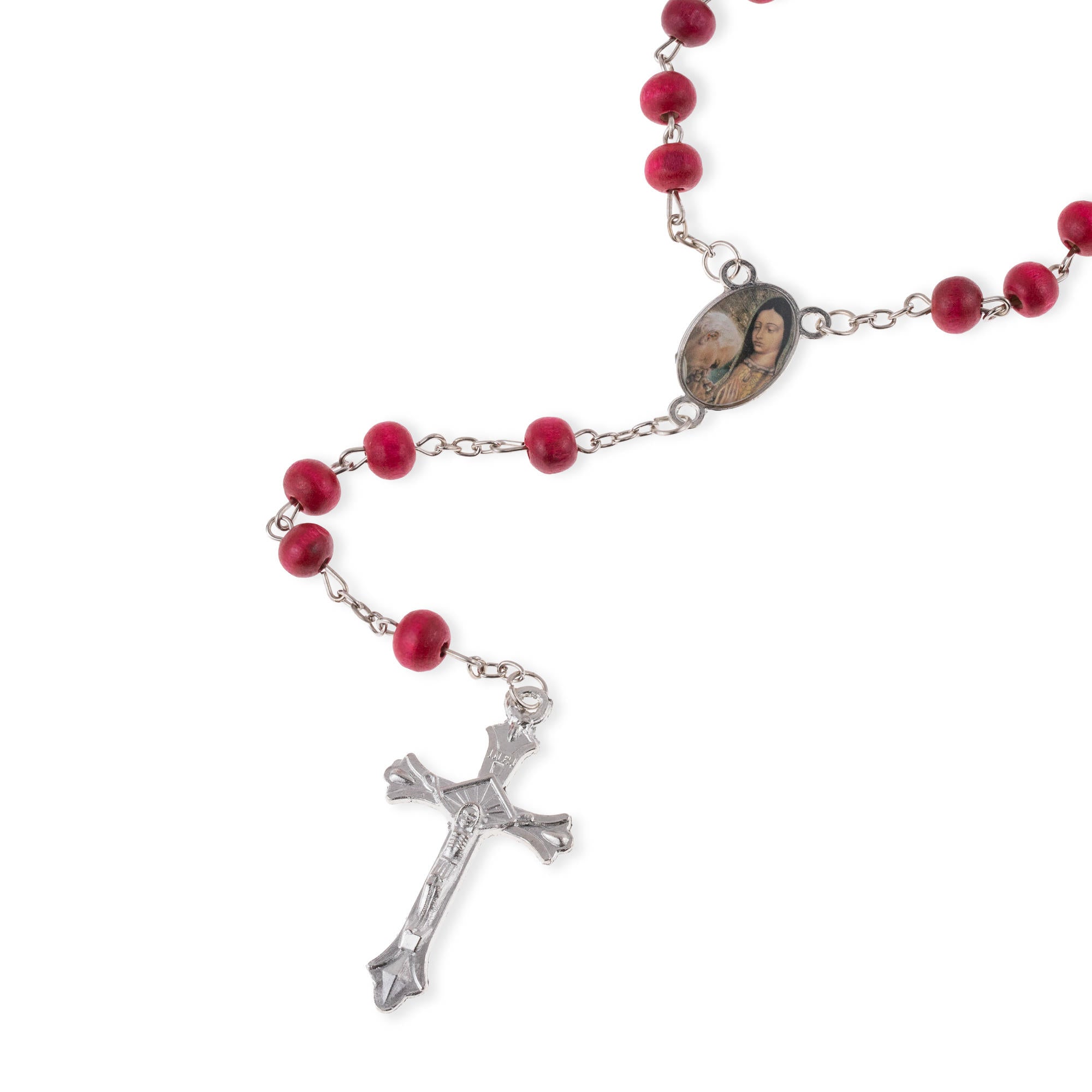 Rosario de madera Virgen de Guadalupe y Papa Juan Pablo II 70cm/7mm