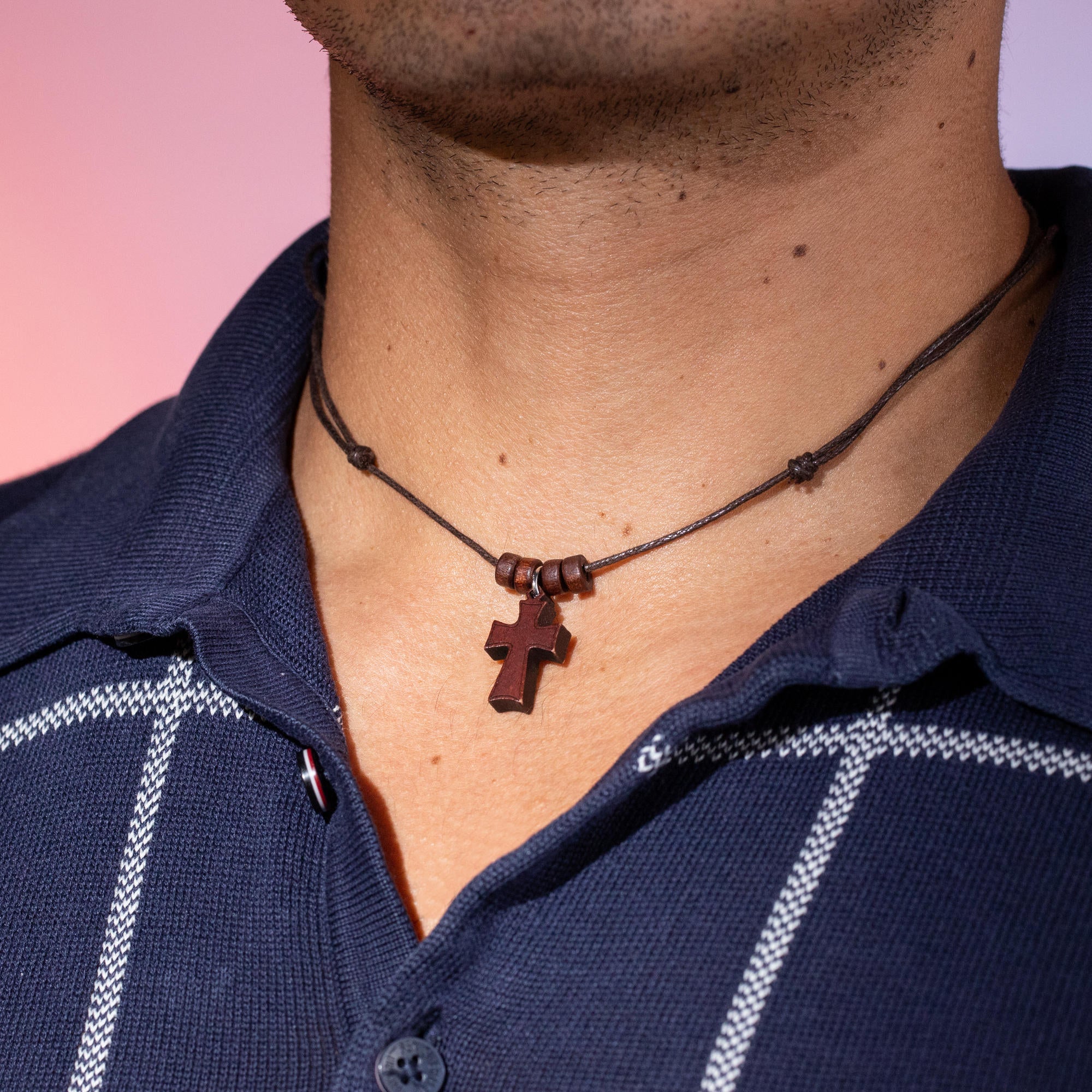 Collar de hilo ajustable con cruz de madera 70cm/24mm