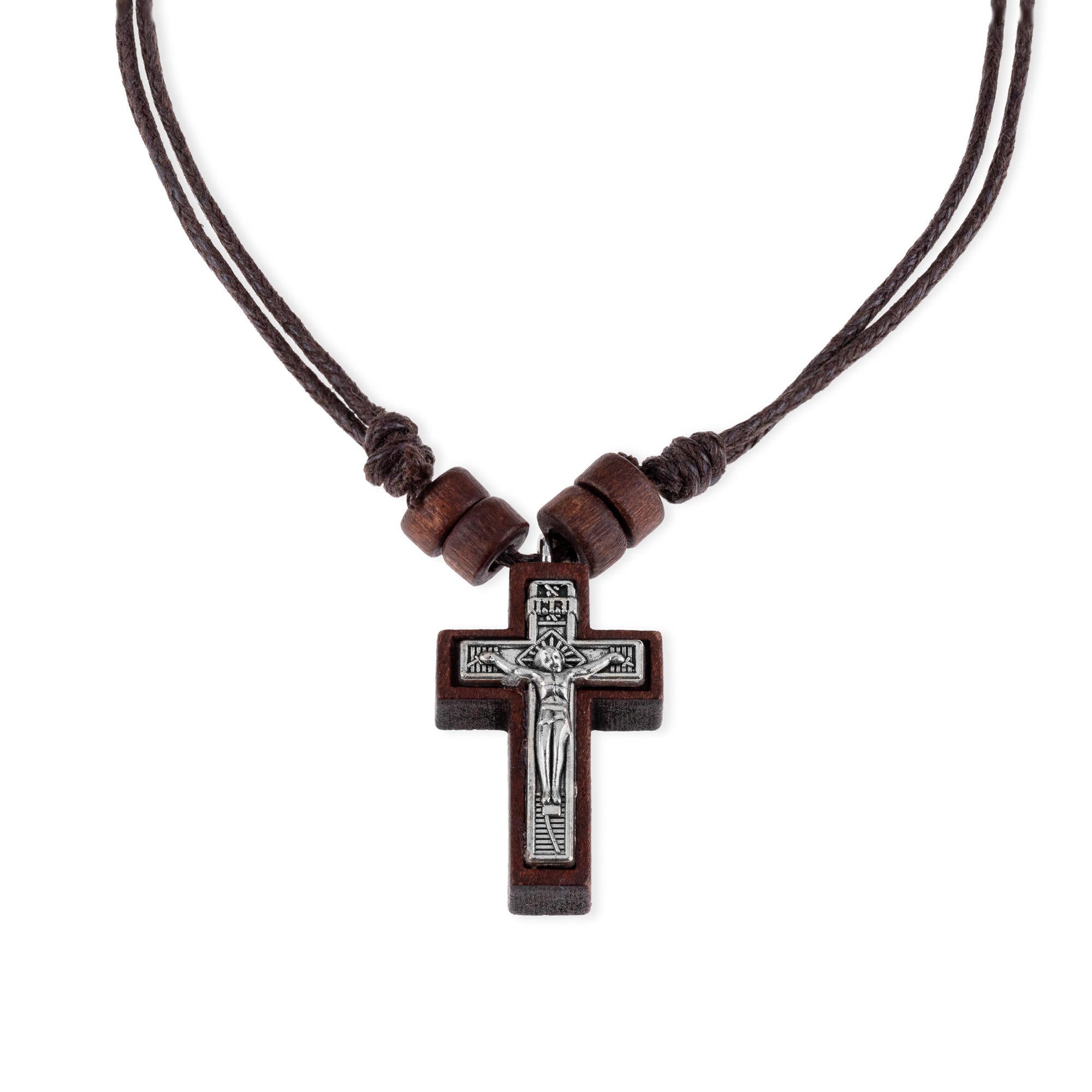 Collar de hilo ajustable con cruz de madera 70cm/30mm