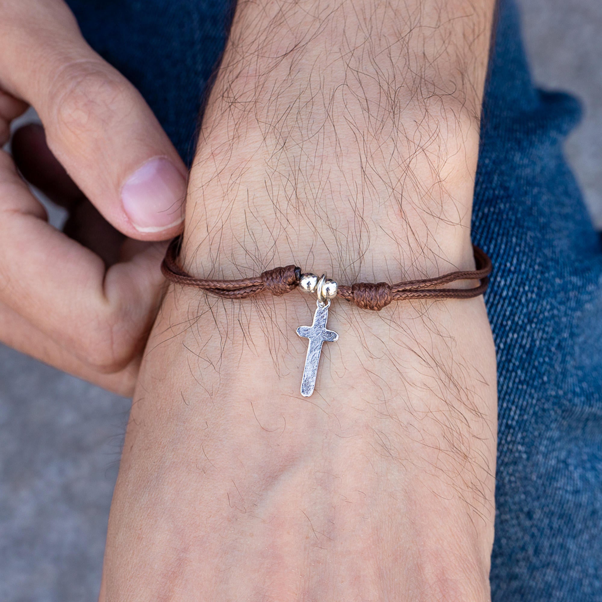 Pulsera de hilo ajustable encerado con cruz lisa 2mm